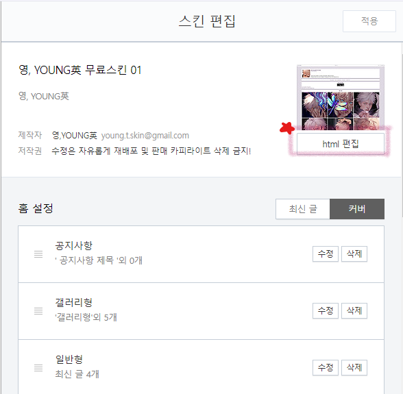 - 스킨편집하기 이미지, 파일명 수정