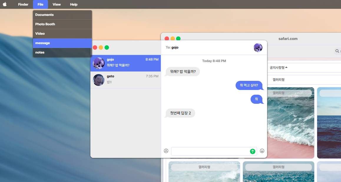(상단 메뉴바) File - message