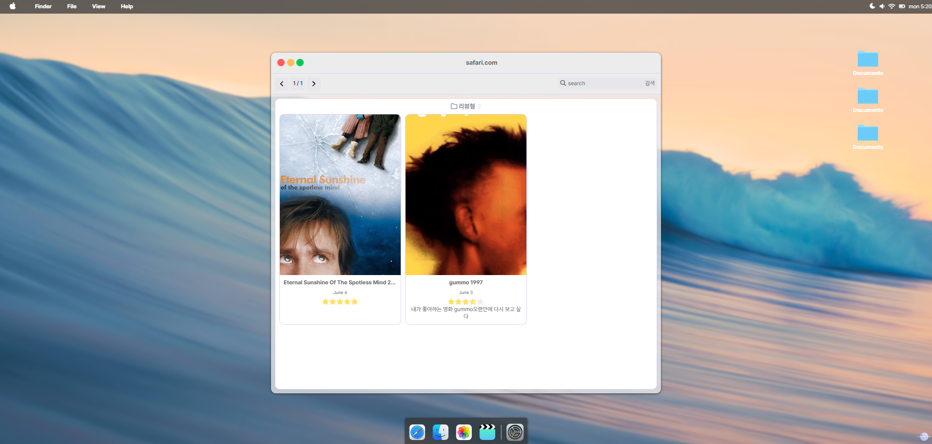 예) 별점 5 내가 좋아하는 영화 gummo