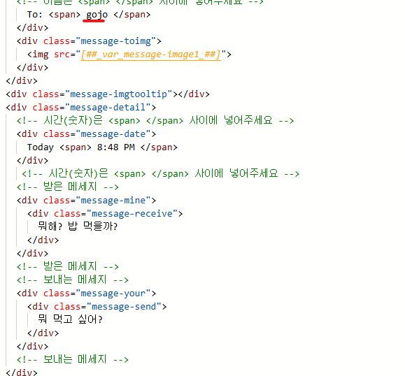 * 문자 내용 수정
