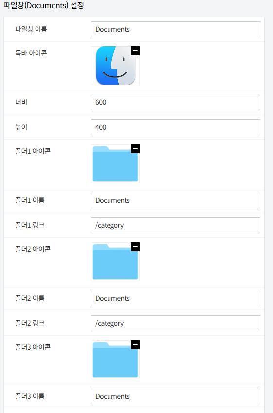 - 스킨편집하기에서 아이콘, 이름, 링크 수정 (= 바탕화면 아이콘 동일)