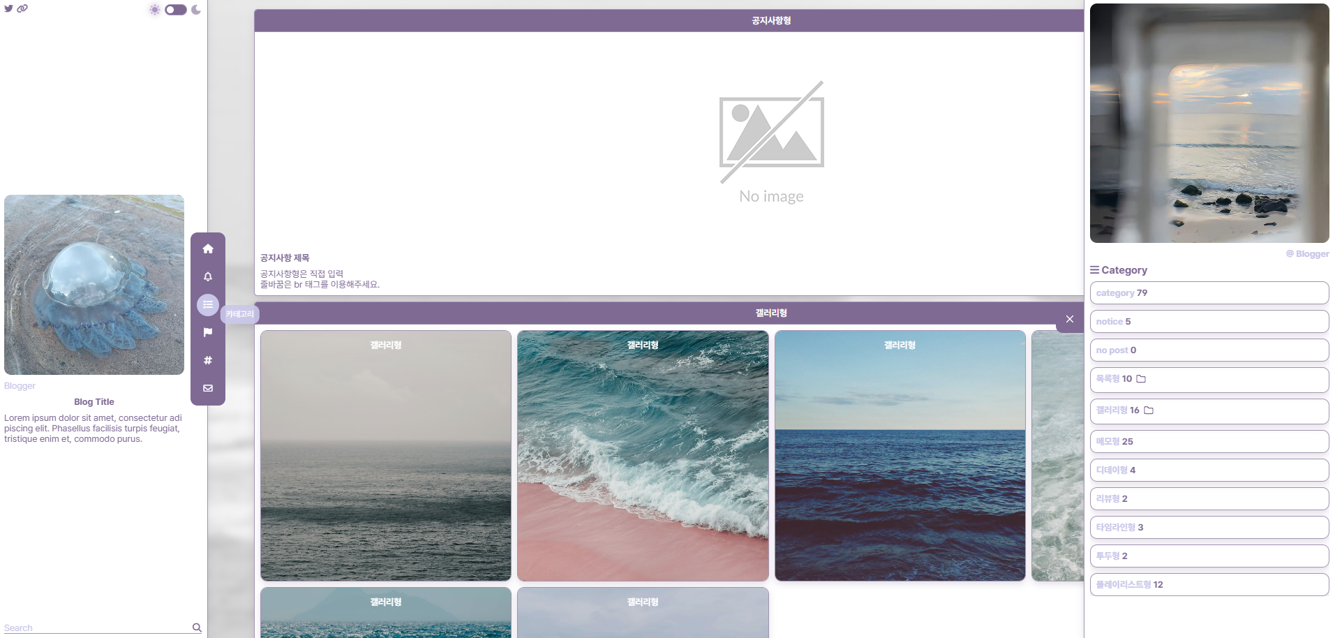 - 기본 홈커버 (공지사항, 갤러리, 목록, 메모, 요약, 디데이, 리뷰, 타임라인, 투두)