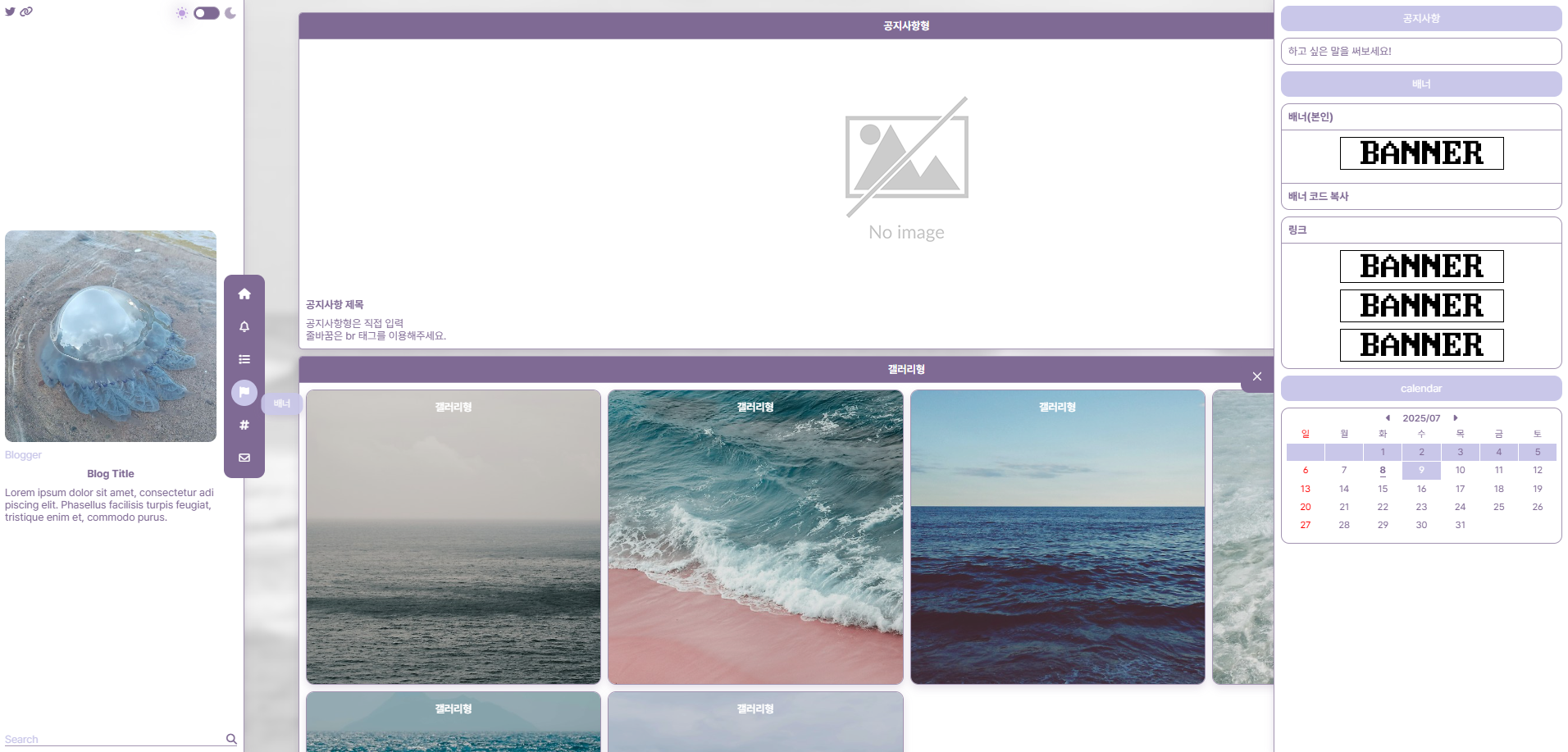 홈커버 (공지사항, 갤러리, 목록, 메모, 요약, 디데이, 리뷰, 타임라인, 투두, 플레이리스트형1, 플레이리스트형2)