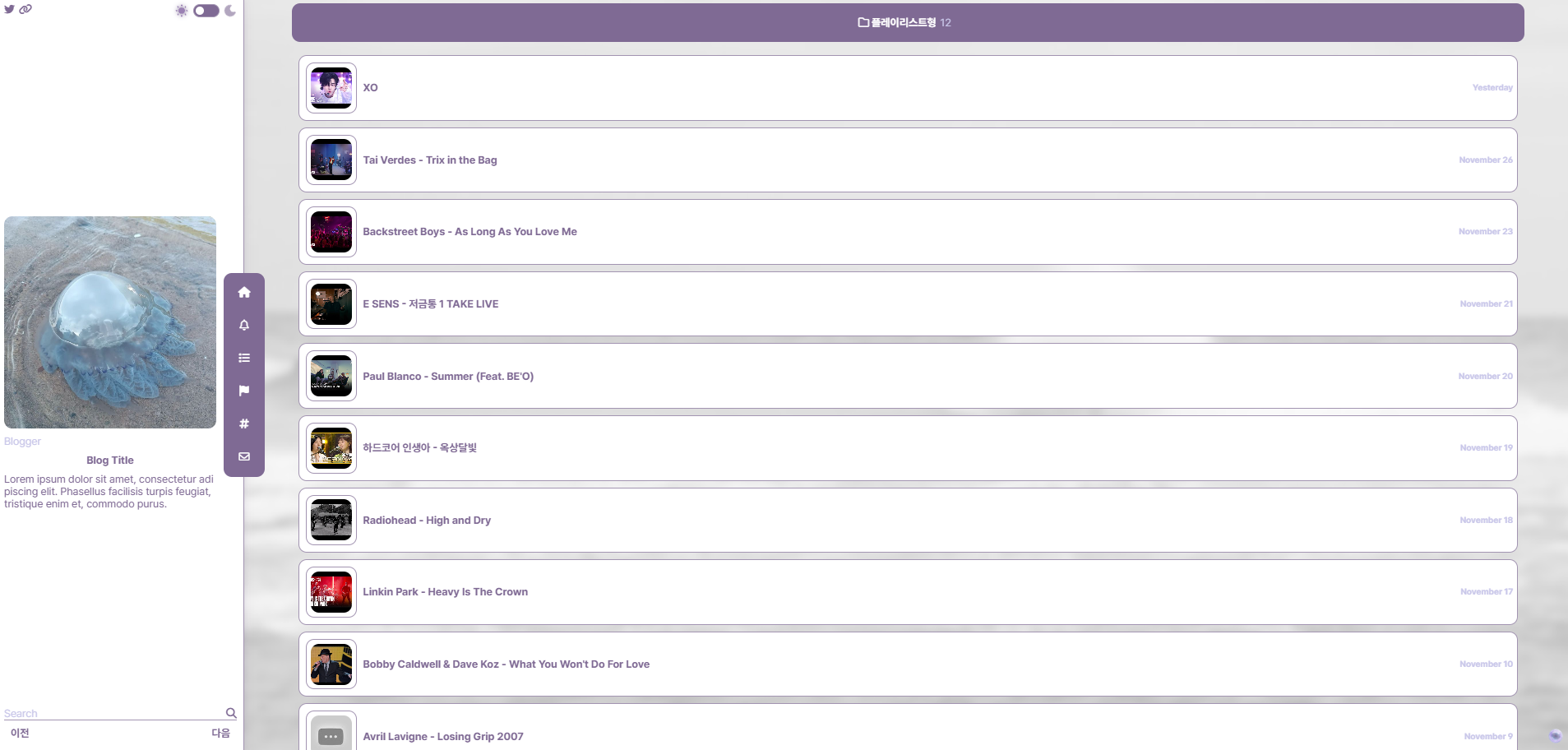 개인적으로 좋아하는 취향을 담아 티스토리 스킨을 제작합니다 ꒰՞⸝⸝•̀𖥦•́꒱و ̖́-♡