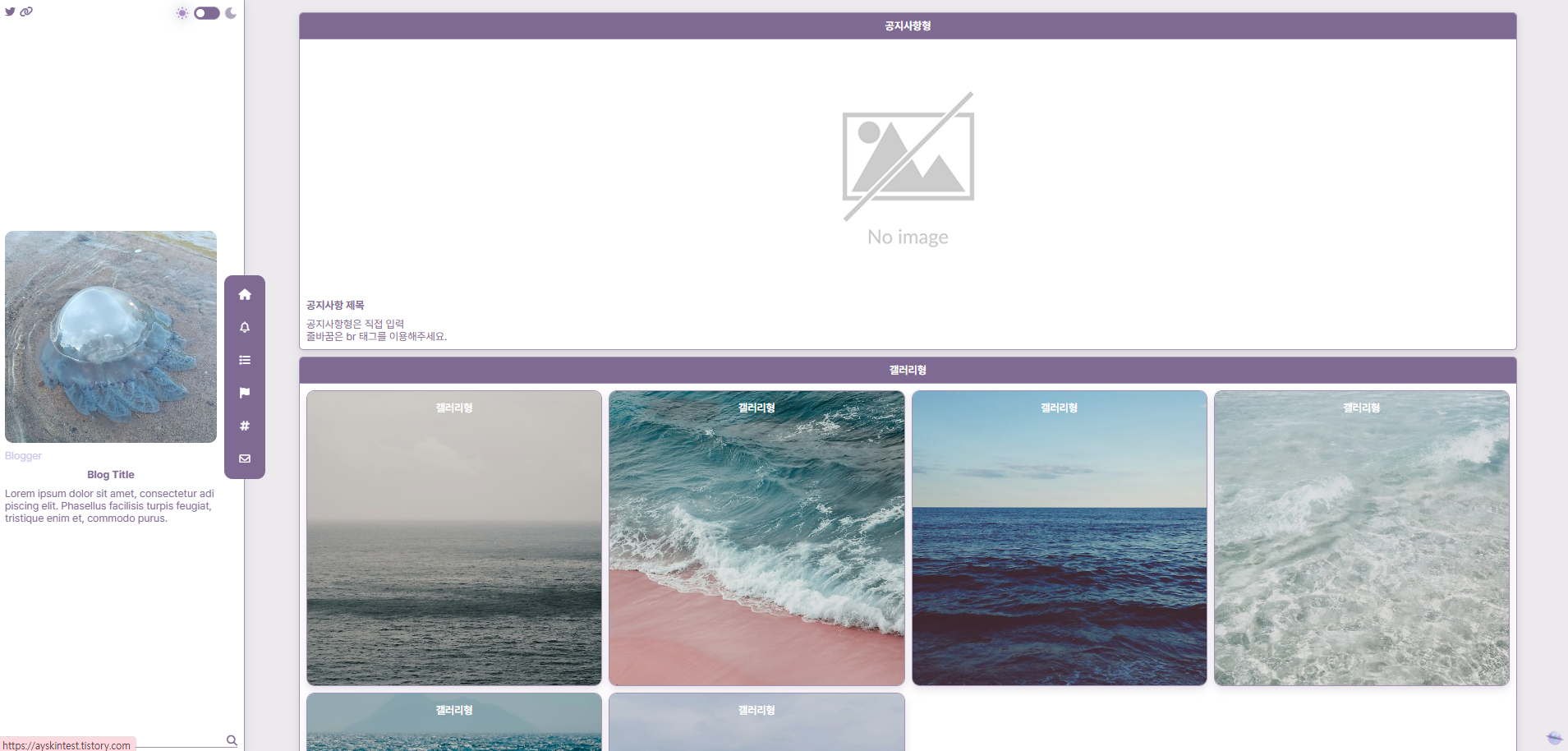 메모형 홈커버 및 게시판은 24.11.04(스킨 36~)부터 추가 됩니다.