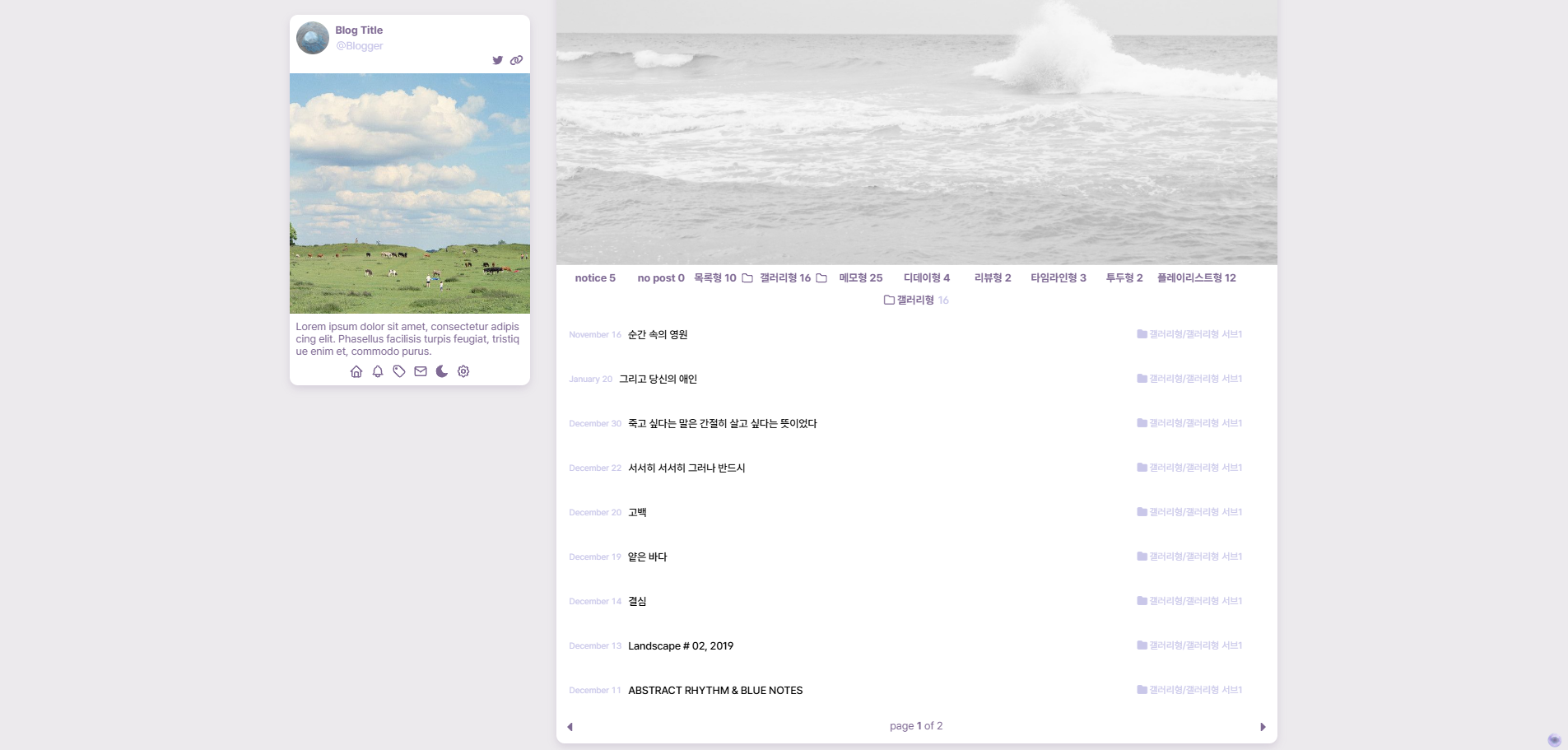 개인적으로 좋아하는 취향을 담아 티스토리 스킨을 제작합니다 ꒰՞⸝⸝•̀𖥦•́꒱و ̖́-♡