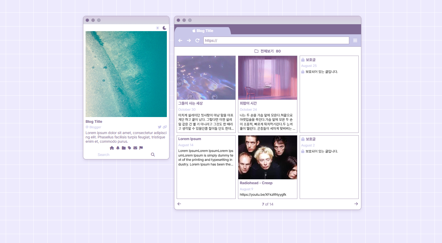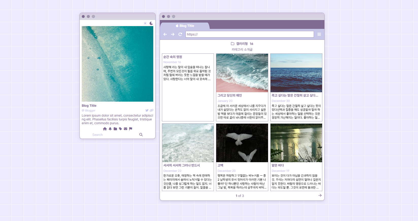 개인적으로 좋아하는 취향을 담아 티스토리 스킨을 제작합니다 ꒰՞⸝⸝•̀𖥦•́꒱و ̖́-♡