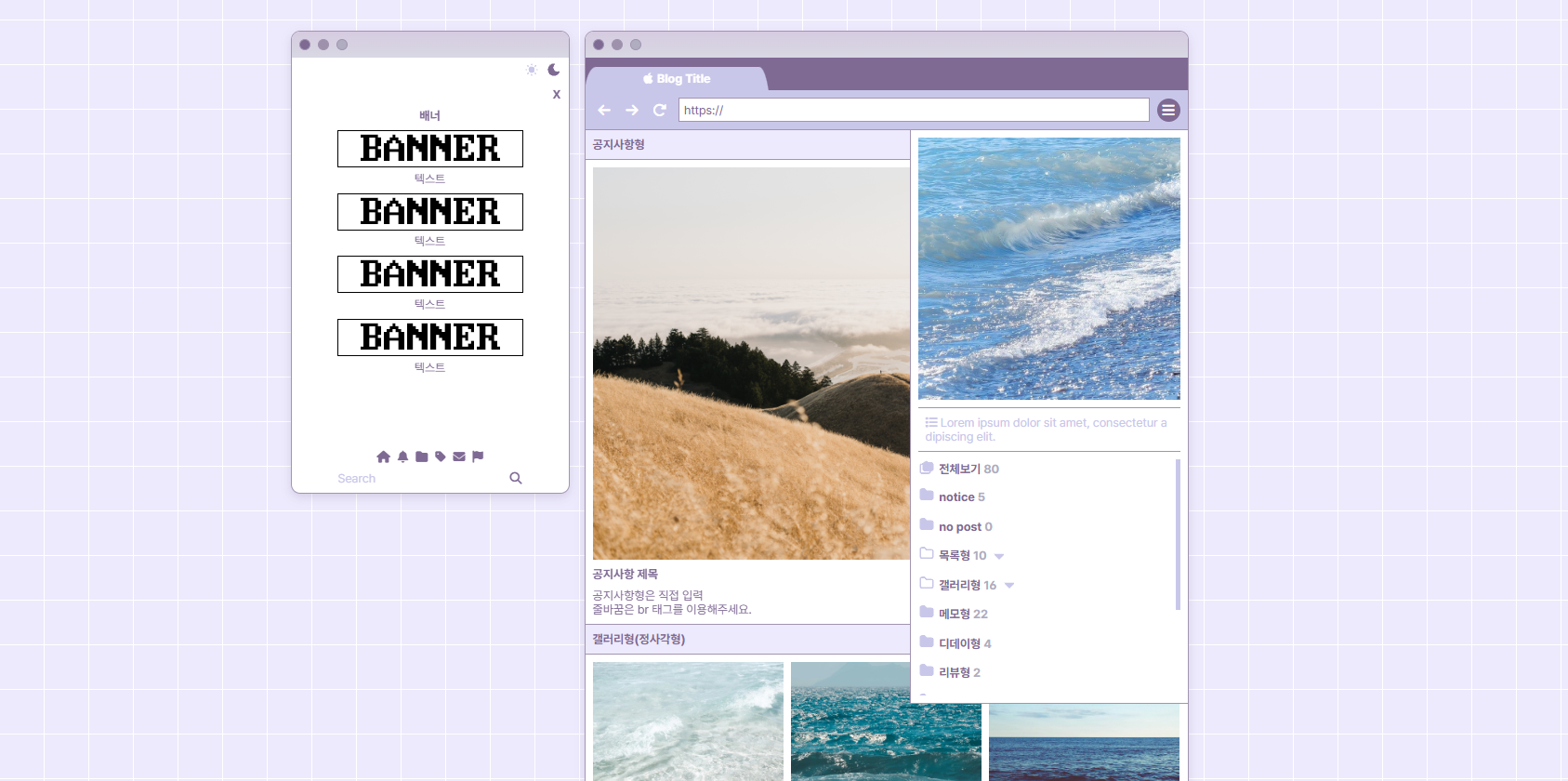 메모형 홈커버 및 게시판은 24.11.04(스킨 36~)부터 추가 됩니다.