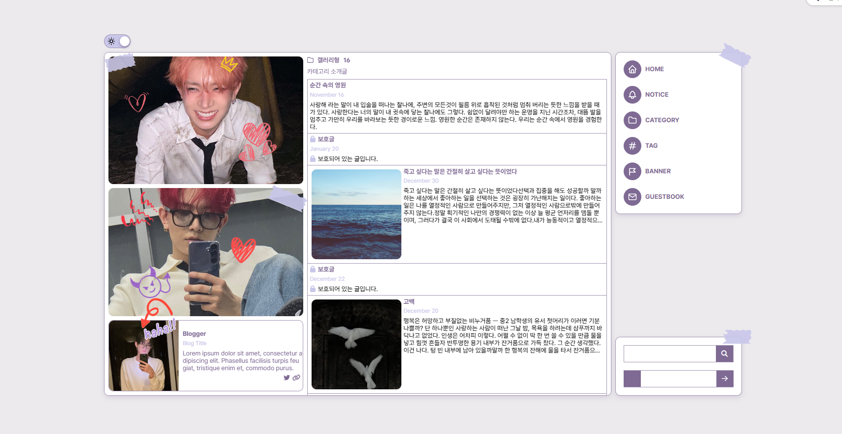 개인적으로 좋아하는 취향을 담아 티스토리 스킨을 제작합니다 ꒰՞⸝⸝•̀𖥦•́꒱و ̖́-♡
