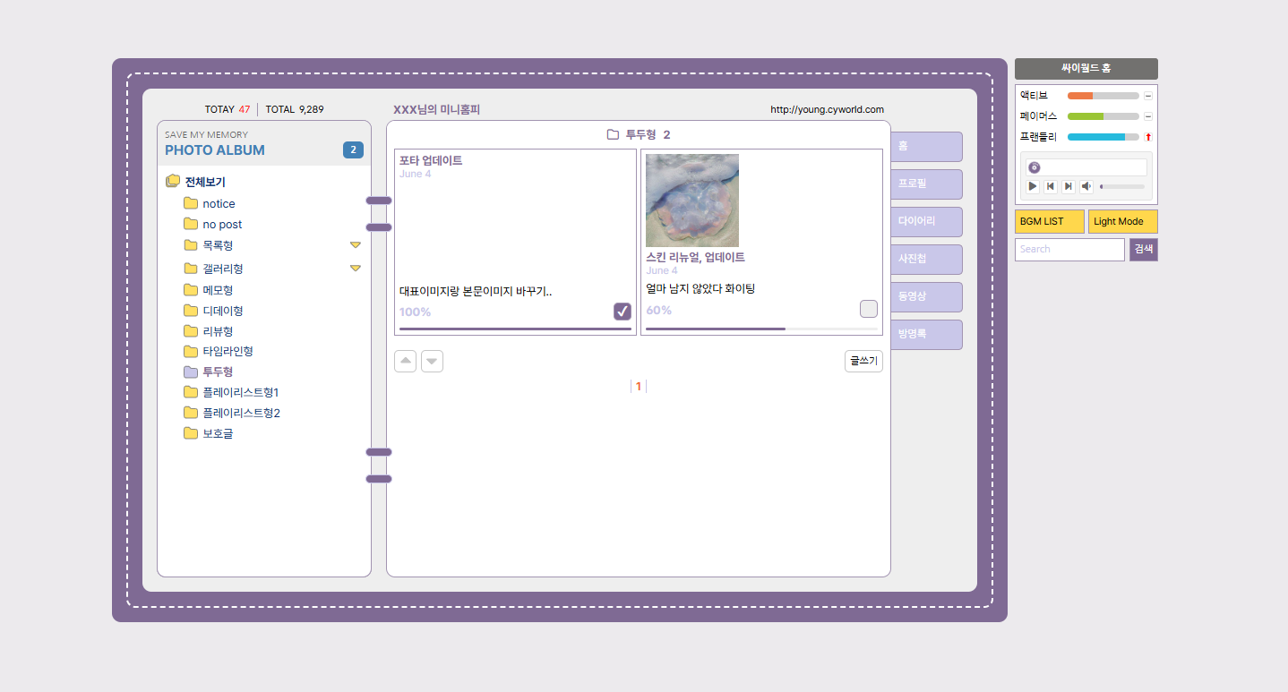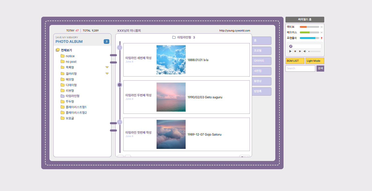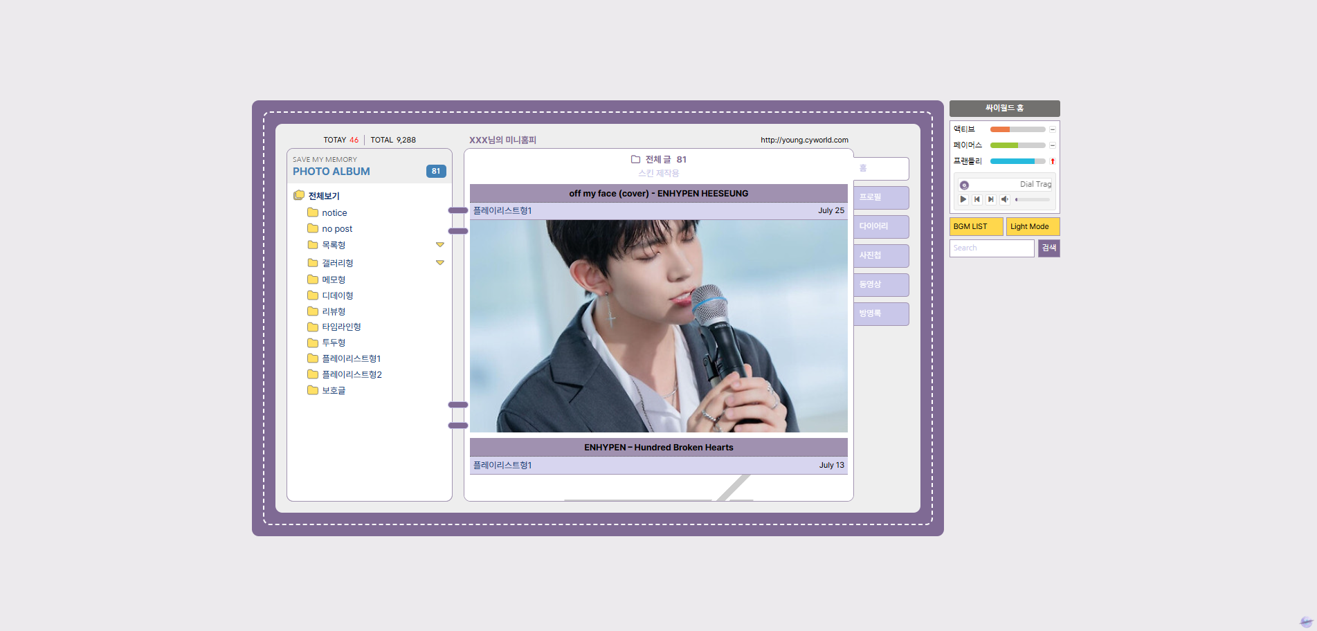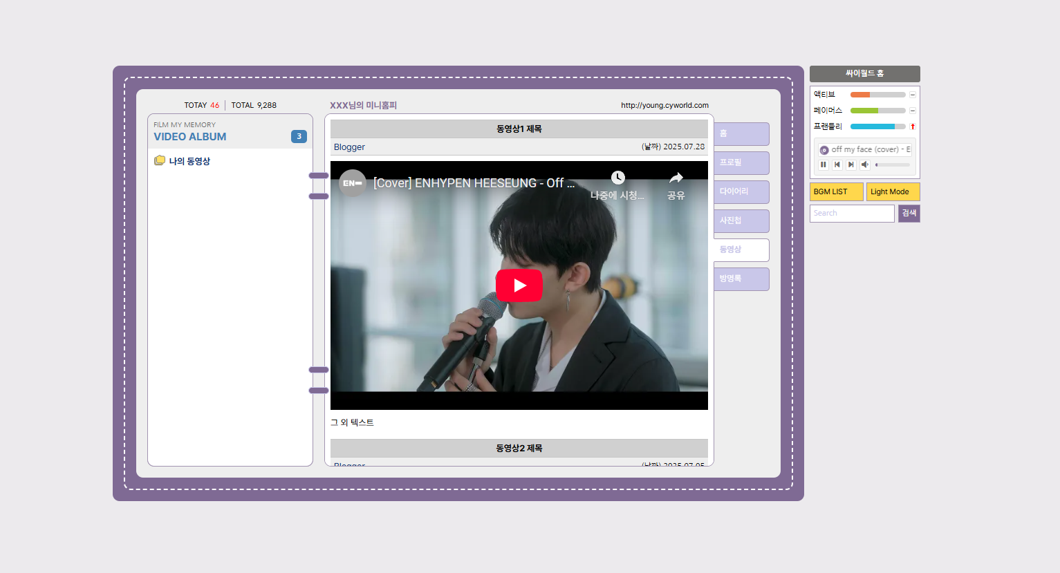 * 싸이월드형은 싸이월드 메인 느낌을 내기 위해 위해 추가했습니다! * 콘텐츠 선택보단 직접입력을 사용해주세요! * 홈커버 - 싸이월드형 타이틀은 아래 4개중에 하나만 선택해주세요!