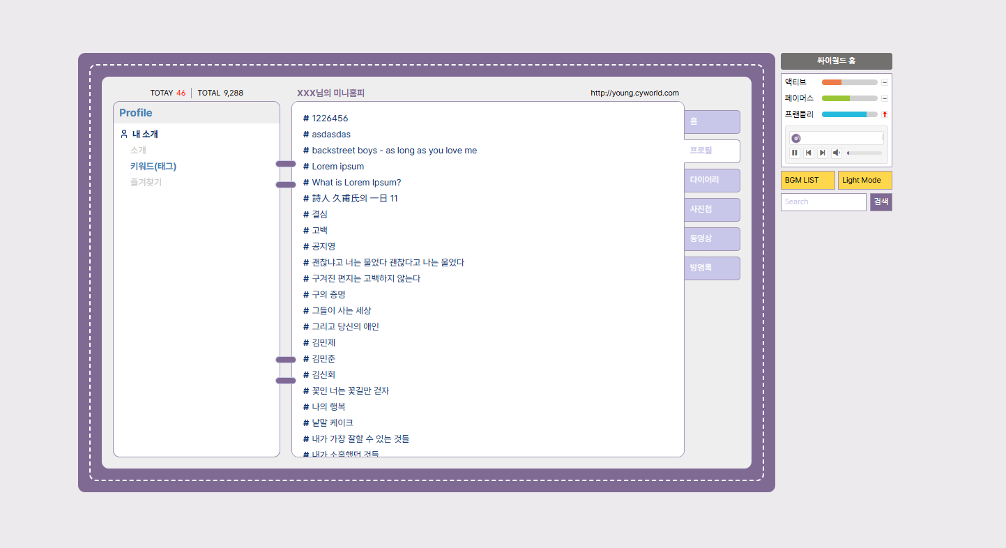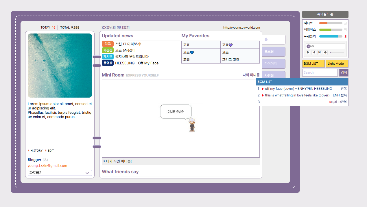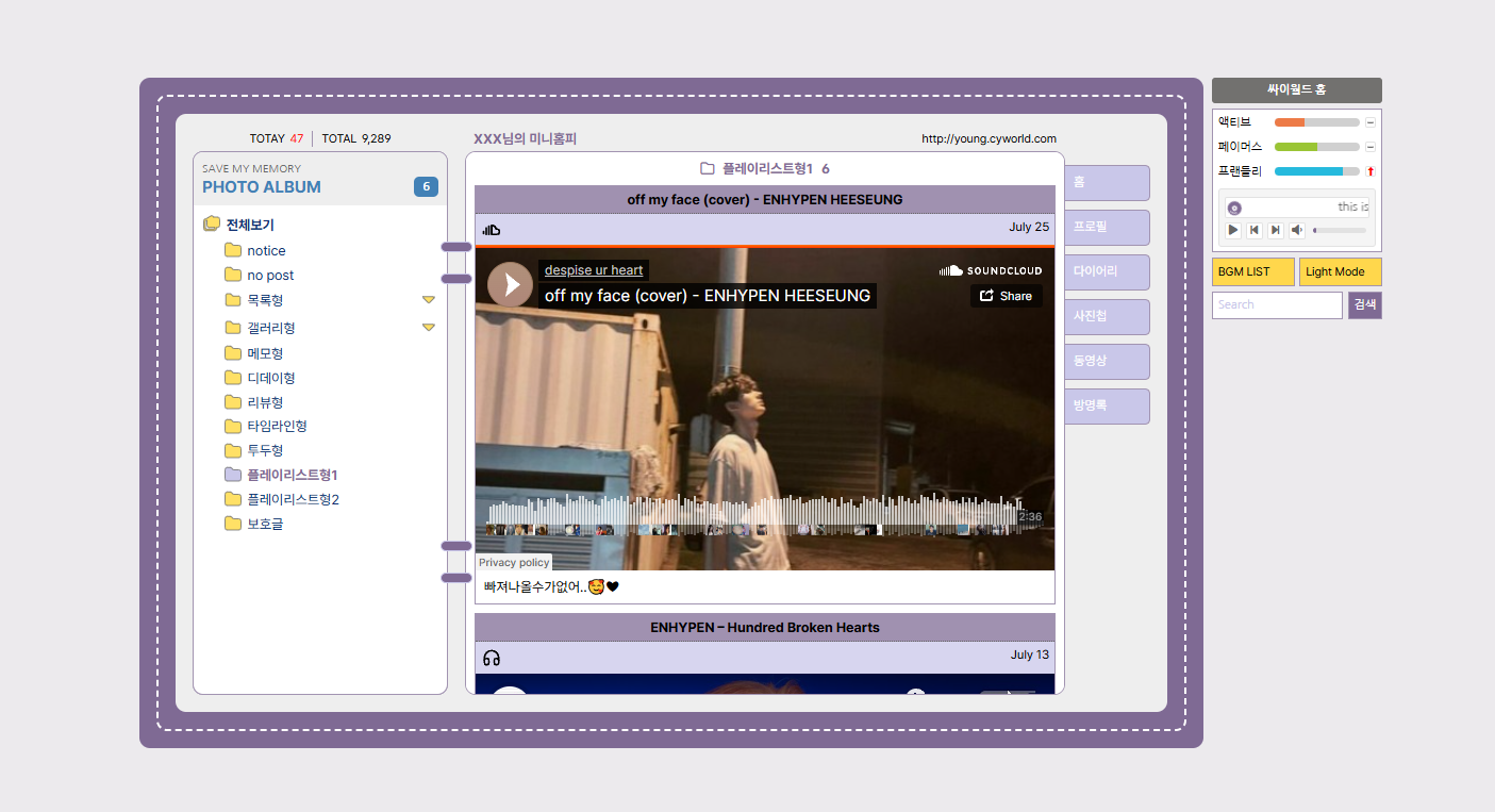 * 싸이월드형은 싸이월드 메인 느낌을 내기 위해 위해 추가했습니다! * 콘텐츠 선택보단 직접입력을 사용해주세요! * 홈커버 - 싸이월드형 타이틀은 아래 4개중에 하나만 선택해주세요!