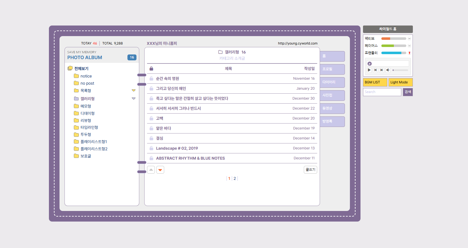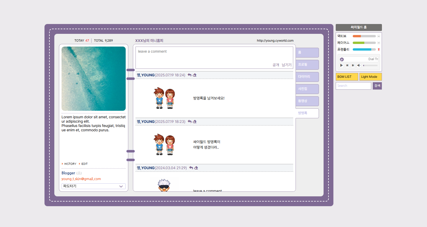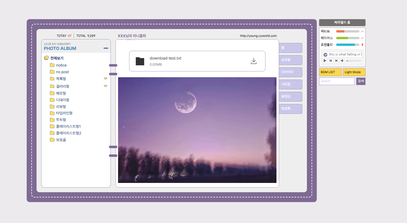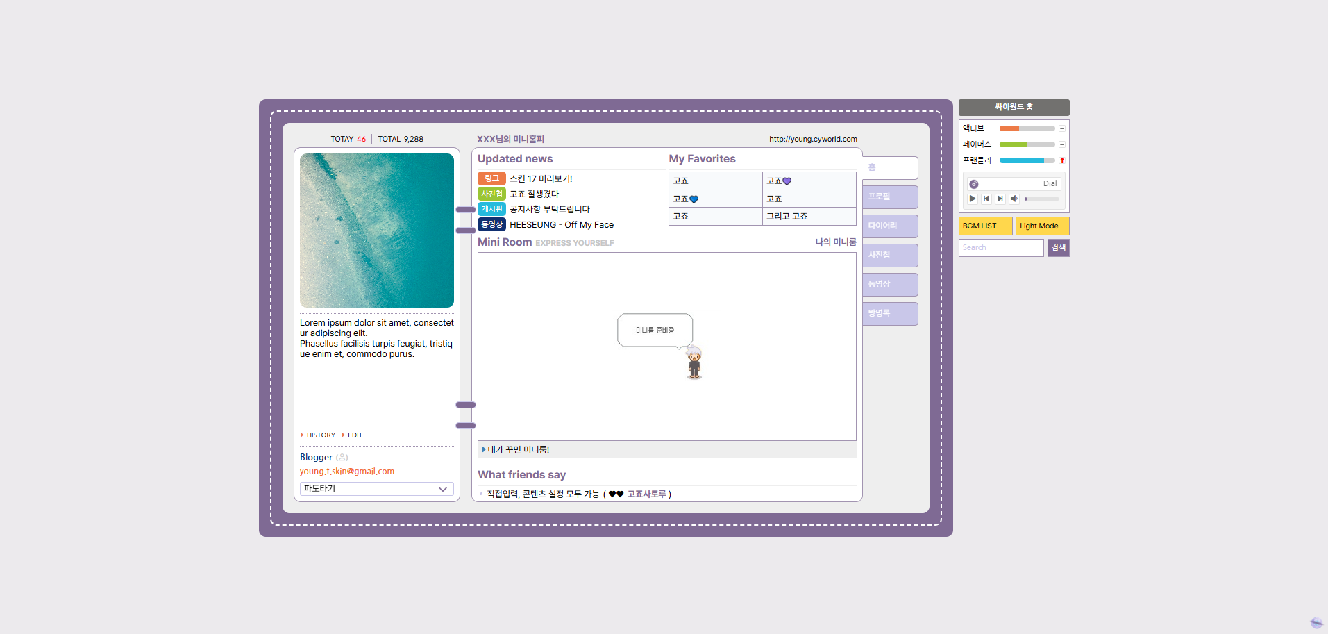 * 싸이월드형은 싸이월드 메인 느낌을 내기 위해 위해 추가했습니다! * 콘텐츠 선택보단 직접입력을 사용해주세요! * 홈커버 - 싸이월드형 타이틀은 아래 4개중에 하나만 선택해주세요!