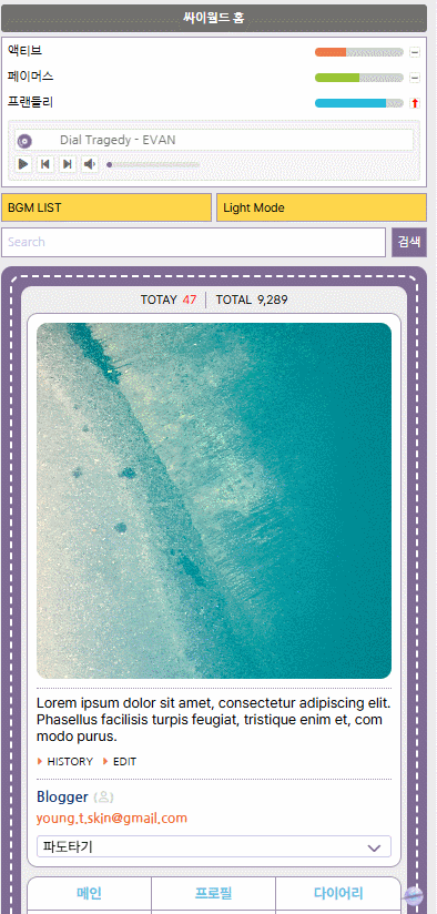 개인적으로 좋아하는 취향을 담아 티스토리 스킨을 만들고 있습니다.
