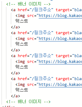 - 링크주소와 img src " " 안에 이미지 주소를 수정해주시면 됩니다.