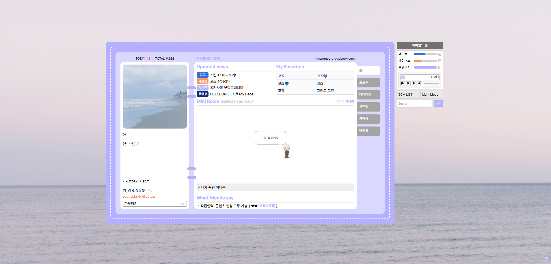 개인적으로 좋아하는 취향을 담아 티스토리 스킨을 제작합니다 ꒰՞⸝⸝•̀𖥦•́꒱و ̖́-♡