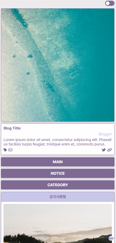 - 포인트 색상 및 이미지는 스킨편집하기에서 수정해주시면 됩니다