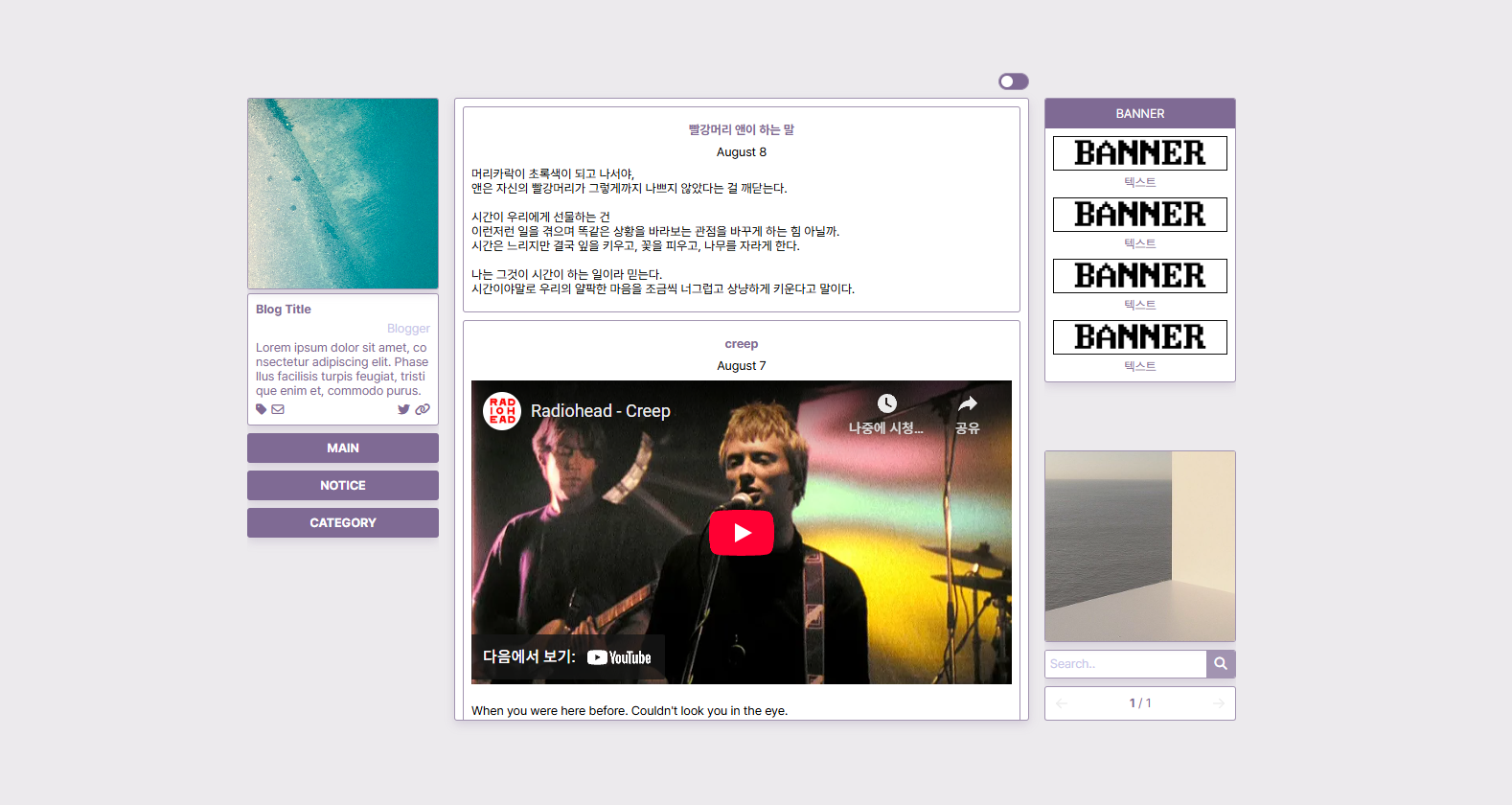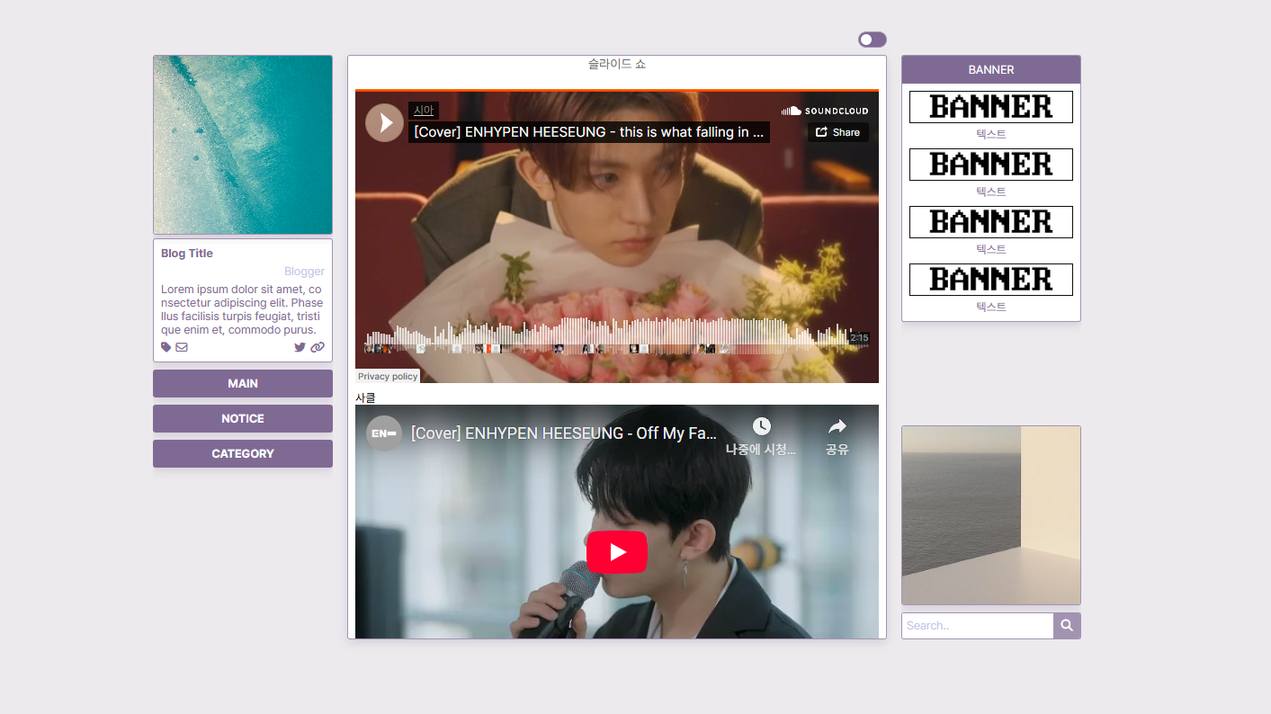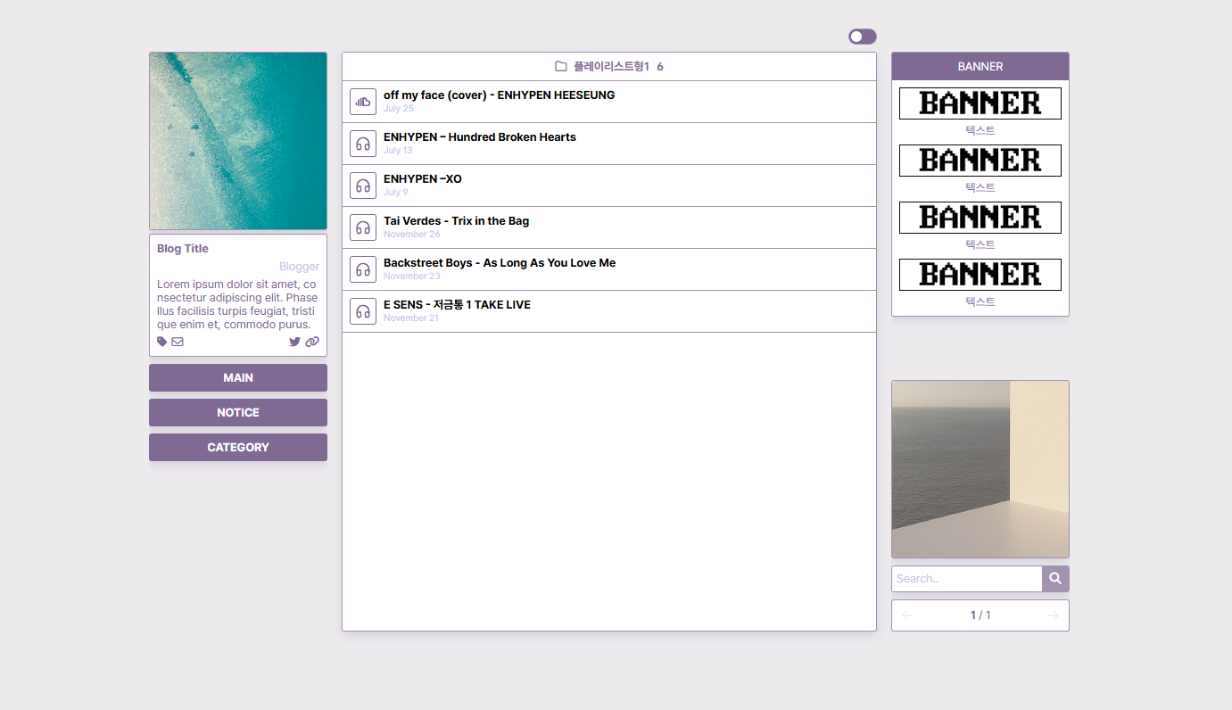 개인적으로 좋아하는 취향을 담아 티스토리 스킨을 제작합니다 ꒰՞⸝⸝•̀𖥦•́꒱و ̖́-♡