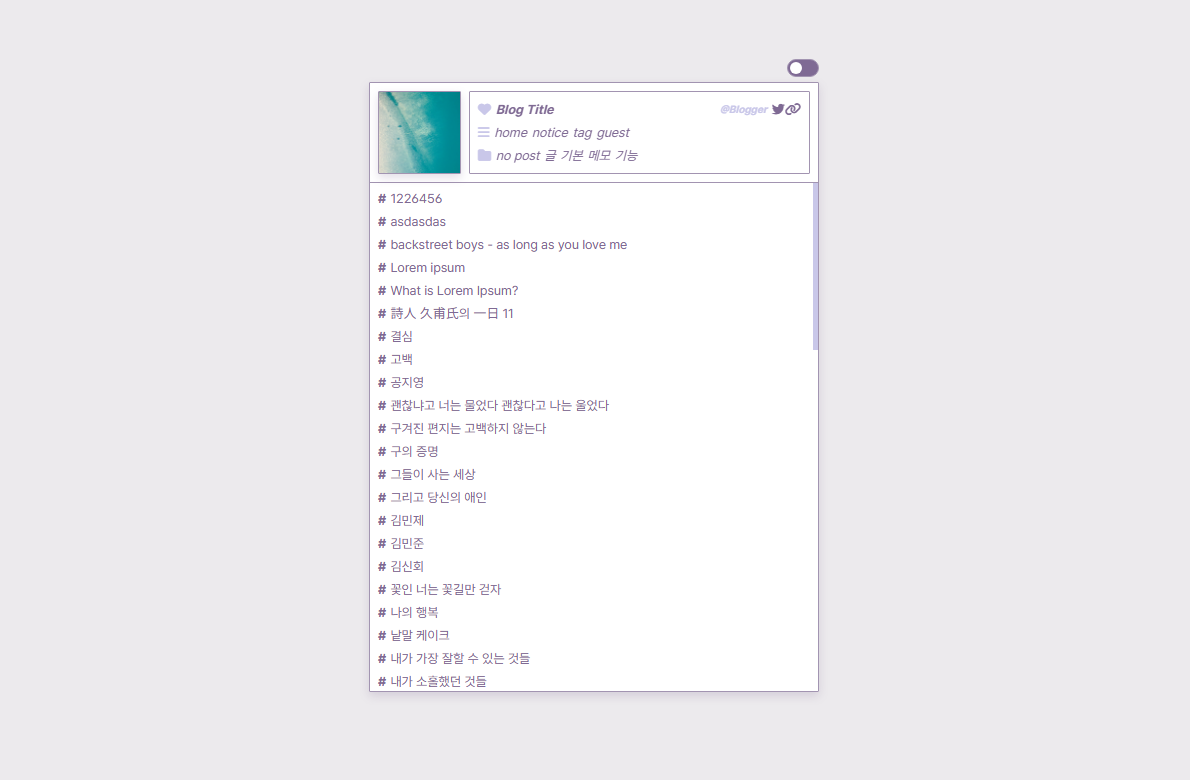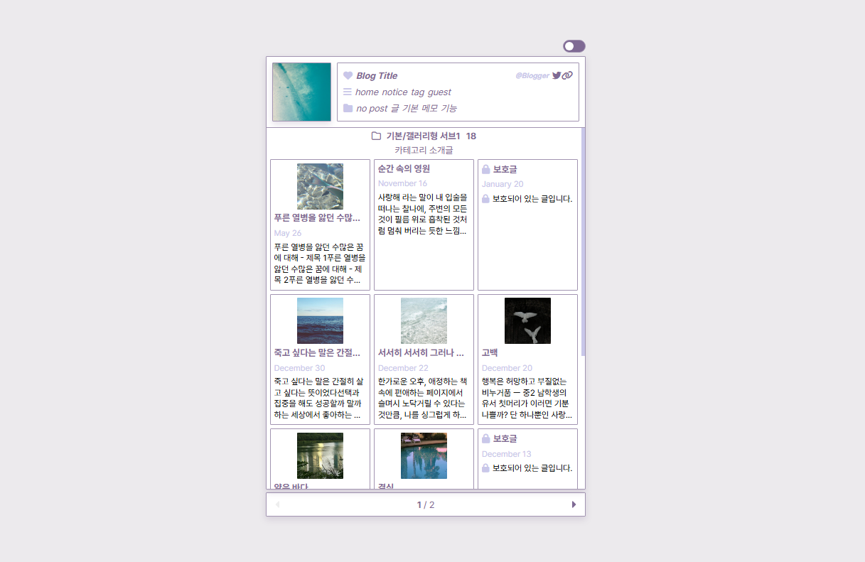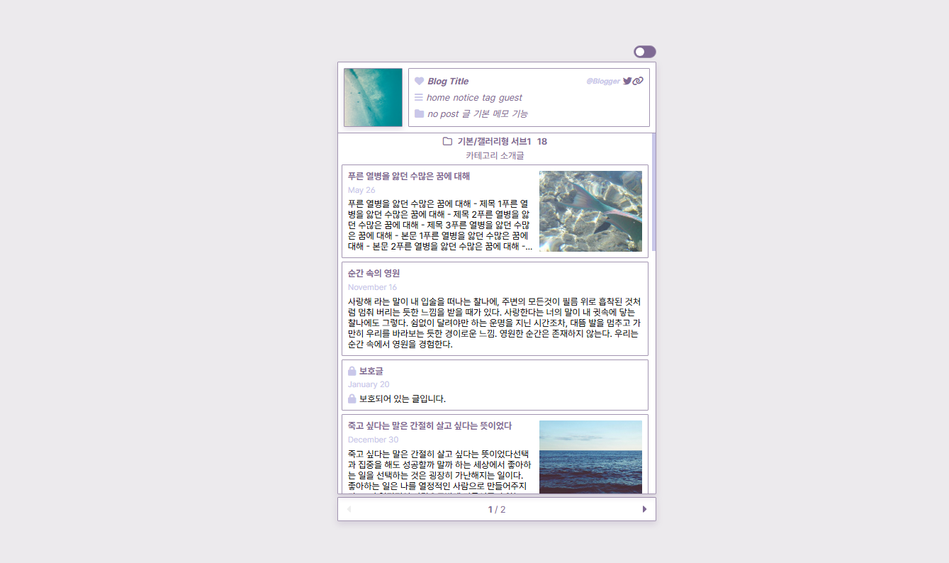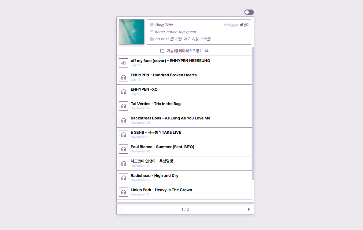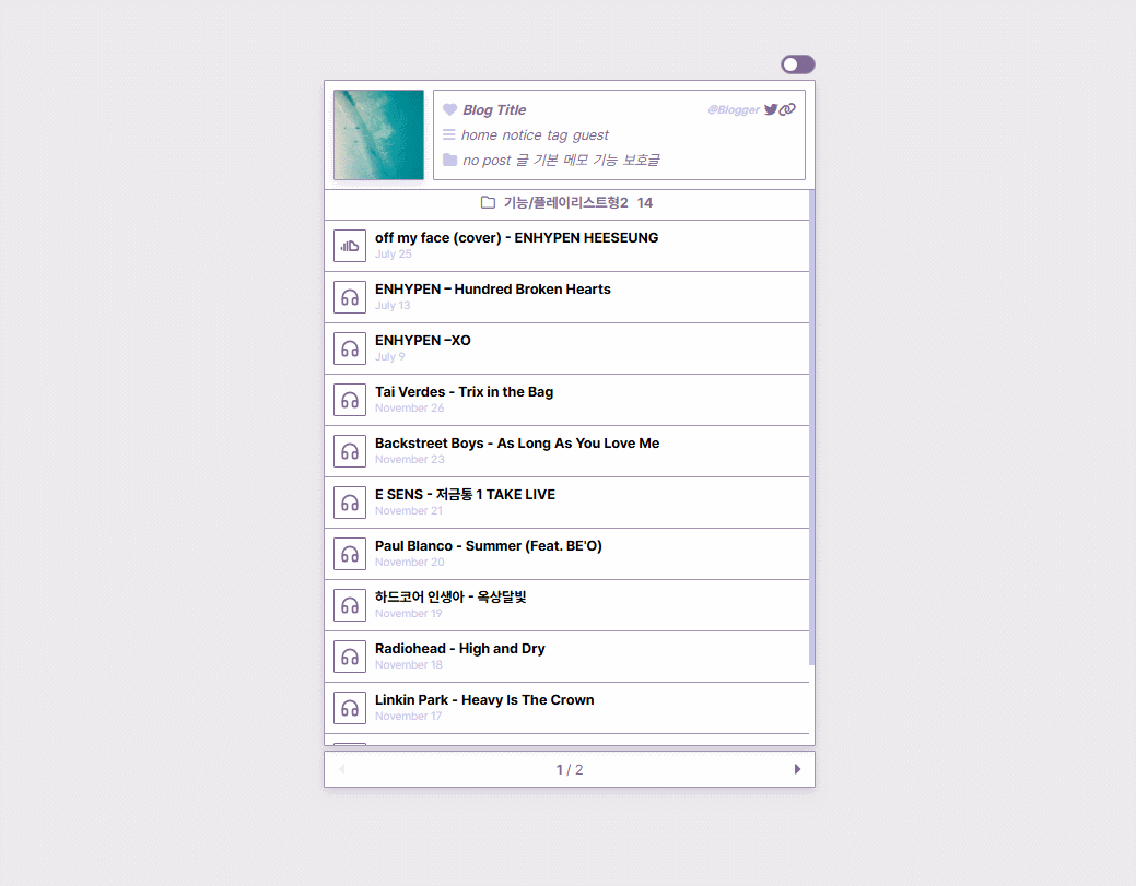 * 스킨편집하기창에서 목록 구성 요소를 모두