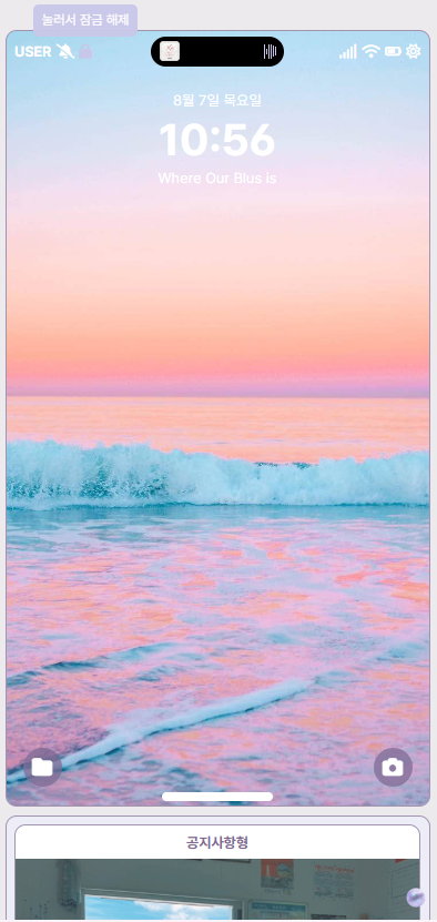 * 홈화면 미사용시 자물쇠 아이콘 / 하단 바는 보이지 않습니다.