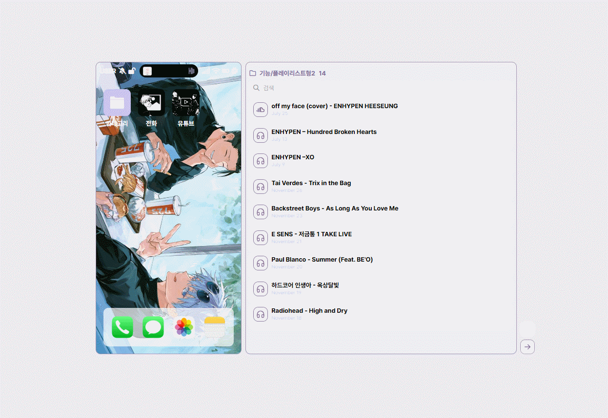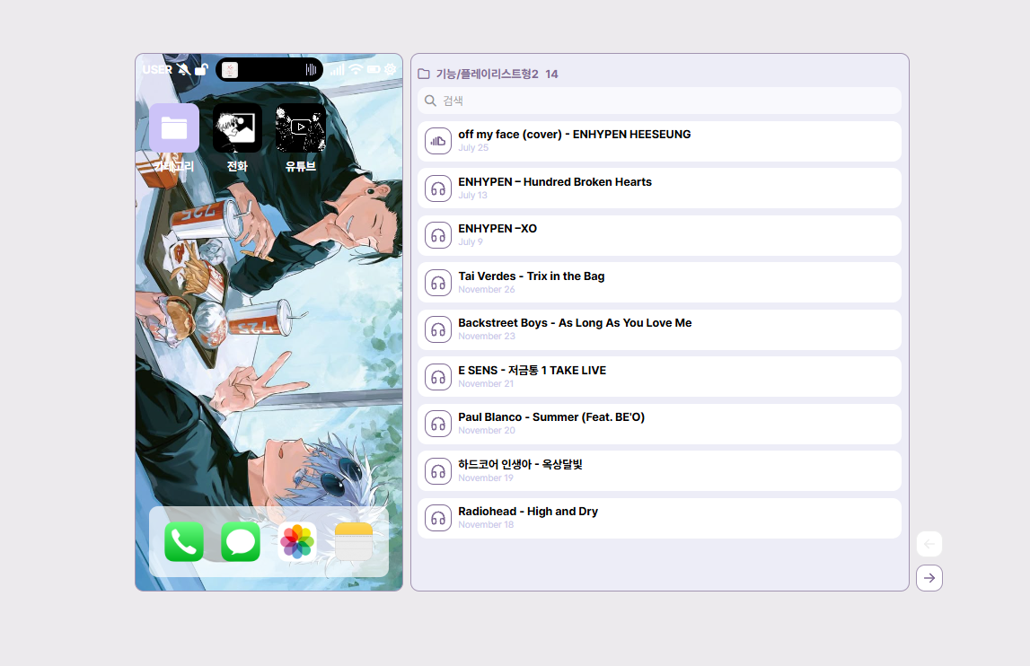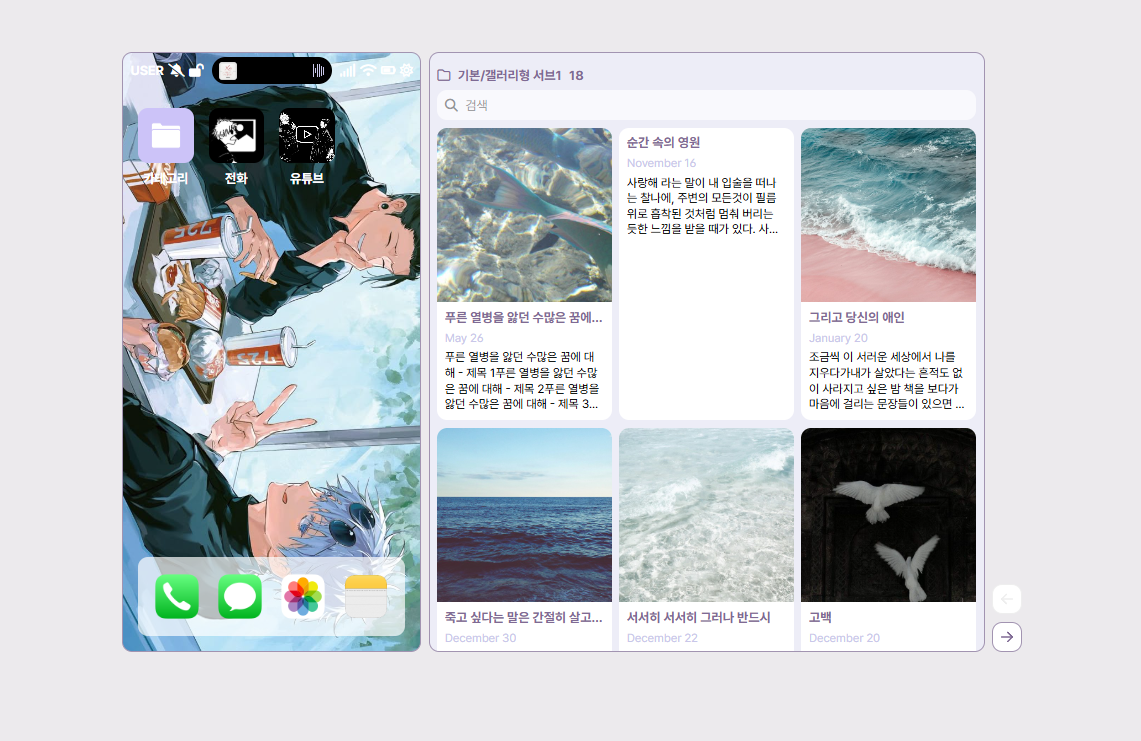 홈화면 하단 독바 (+전화, 메세지 사용시)