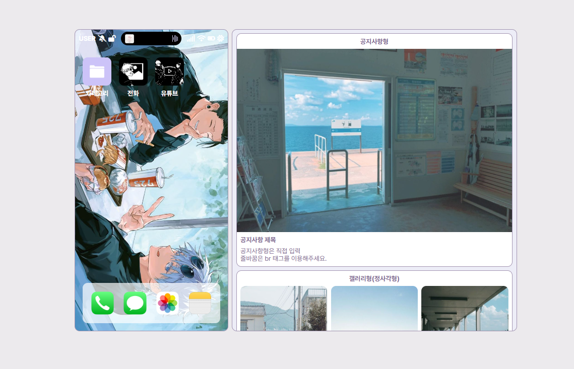 - 스킨 구입 후에도 문의 후 게시판 유형 추가가 가능 합니다 (유료)