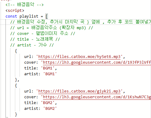 - 스킨편집하기 - html - ctrl+f(찾기) - 배경음악 검색