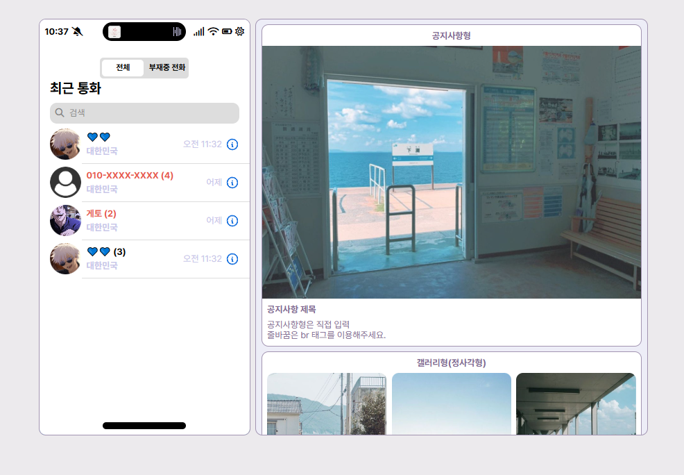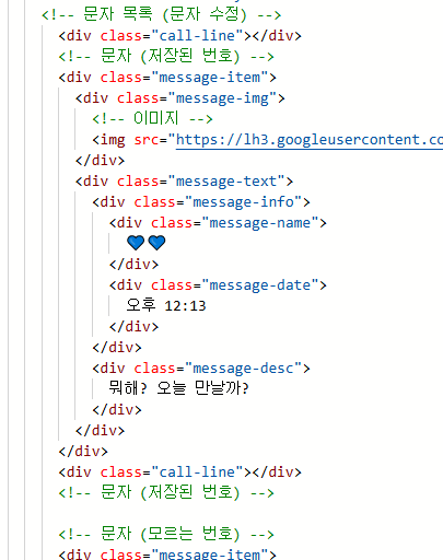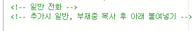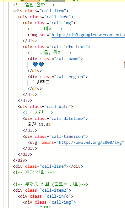 - 통화 목록 추가하고 싶으시면 일반, 부재중 전화 <!-- 일반, 부재중전화 --> 표시 해둔곳 한번에 복사 후 붙여넣기하시고