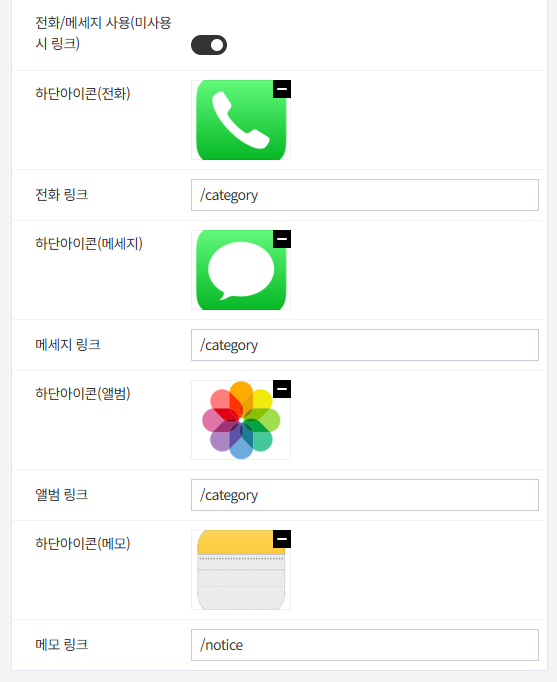 * 앱 아이콘 및 링크는 스킨편집하기에서 수정