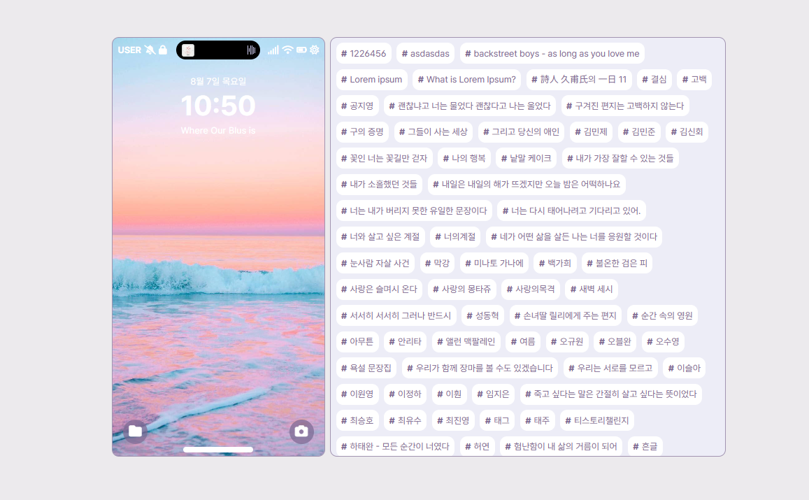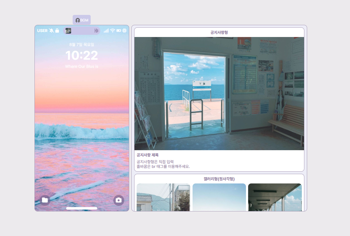 잠금/홈화면/위젯/배너영역/배경음악/다크모드/카테고리