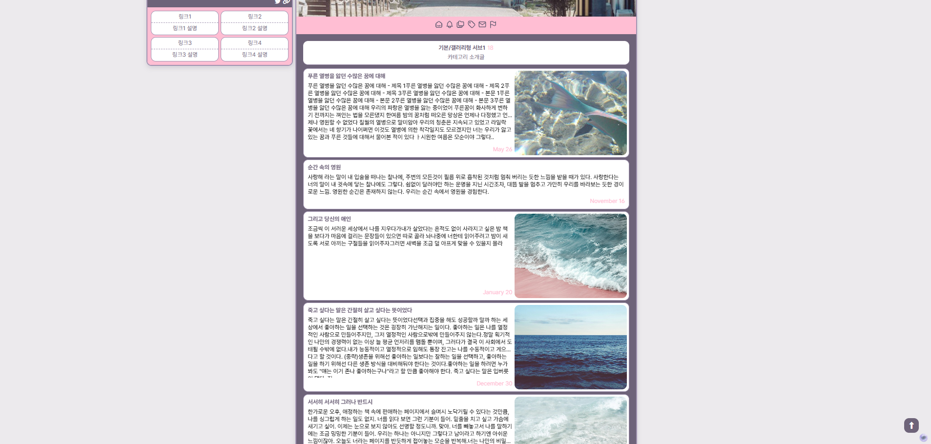 * 디데이형, 리뷰형, 타임라인형, 투두형, 플레이리스트형 게시판 사용방법