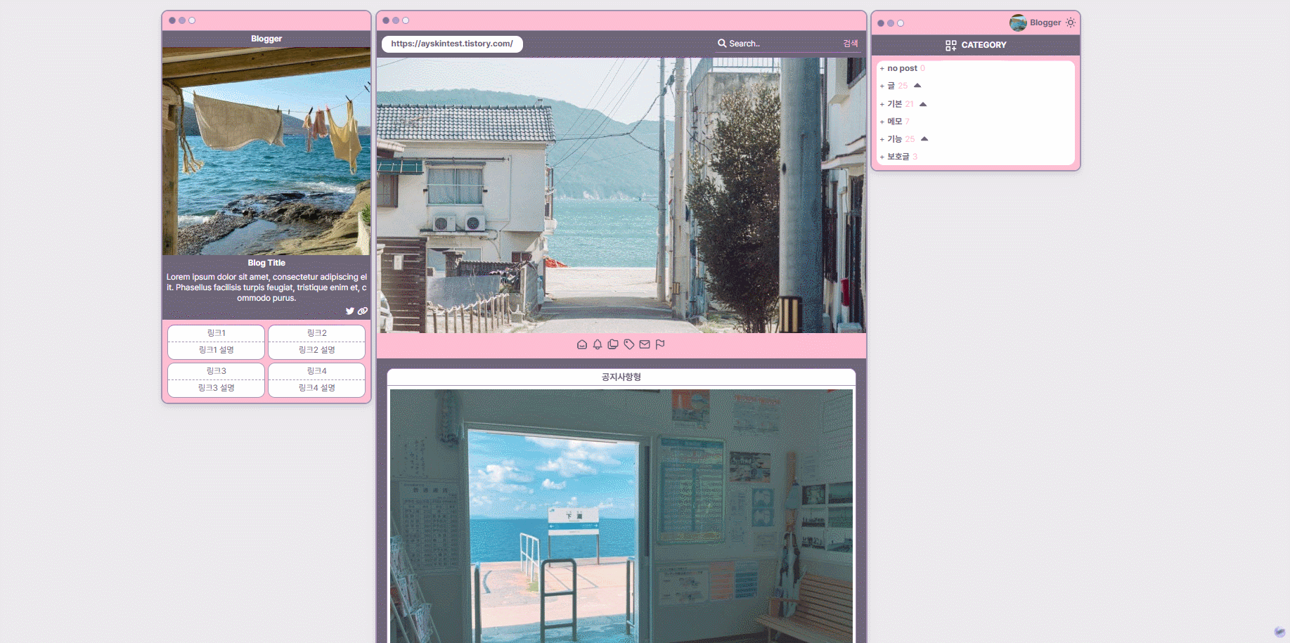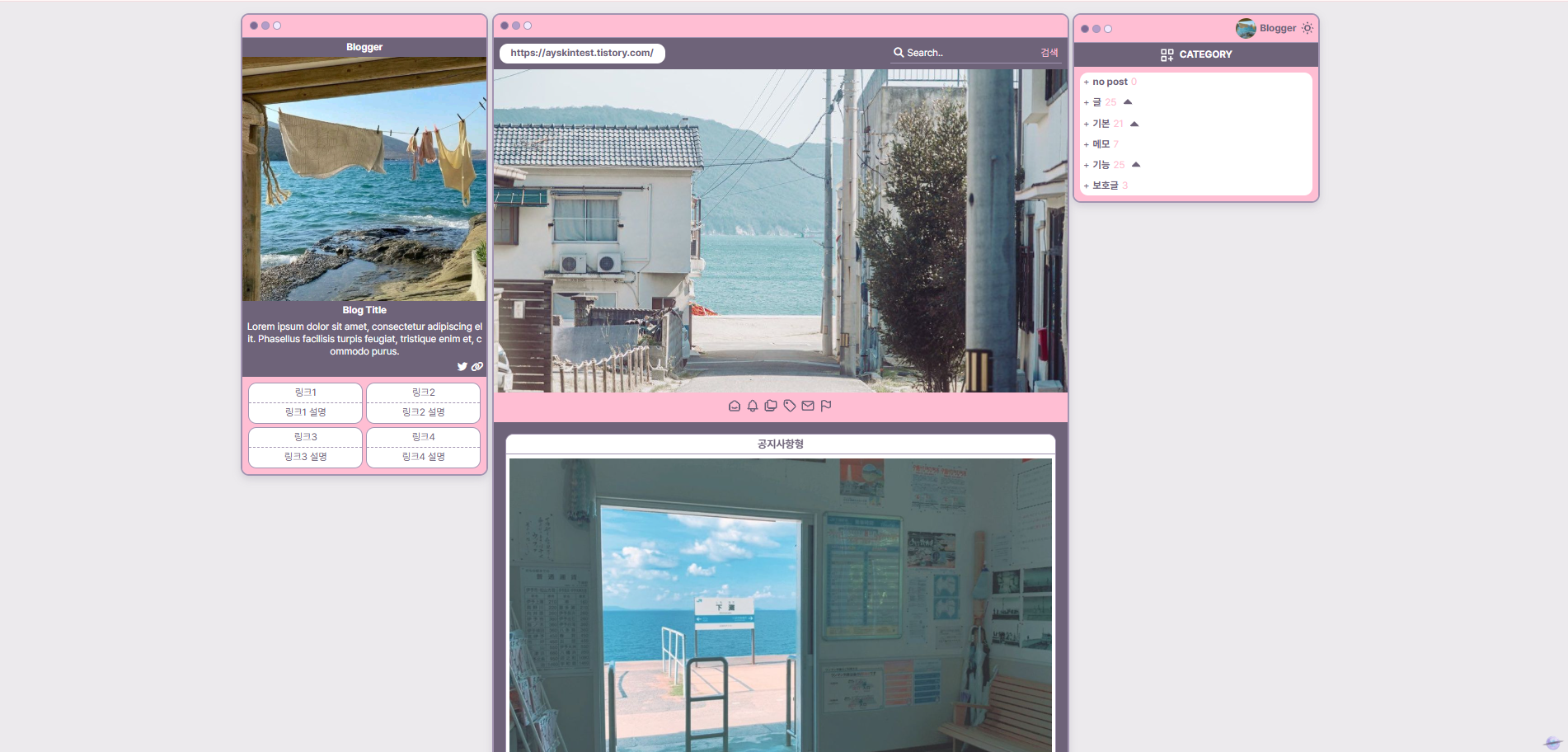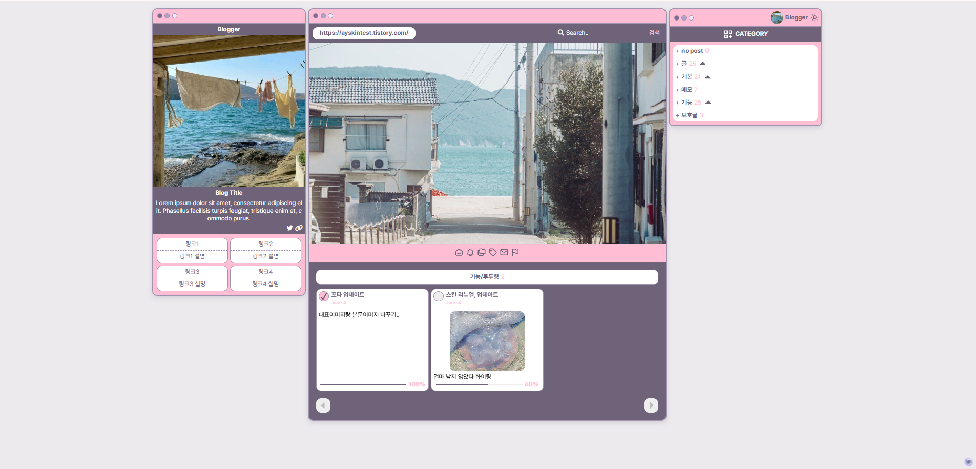 개인적으로 좋아하는 취향을 담아 티스토리 스킨을 제작합니다 ꒰՞⸝⸝•̀𖥦•́꒱و ̖́-♡