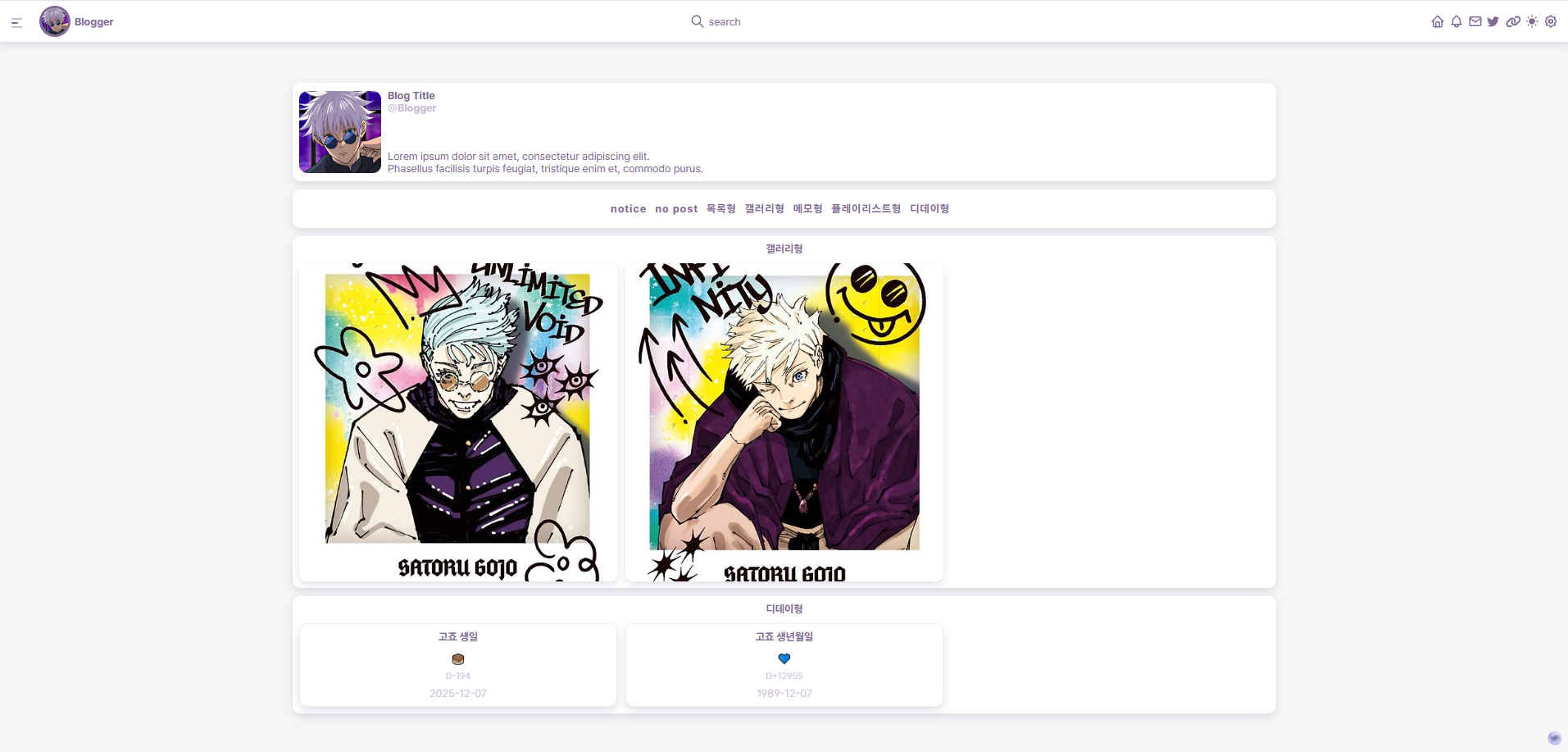 - 프로필 및 배경 그 외 사용되는 이미지는 고죠 관련 이미지를 사용합니다