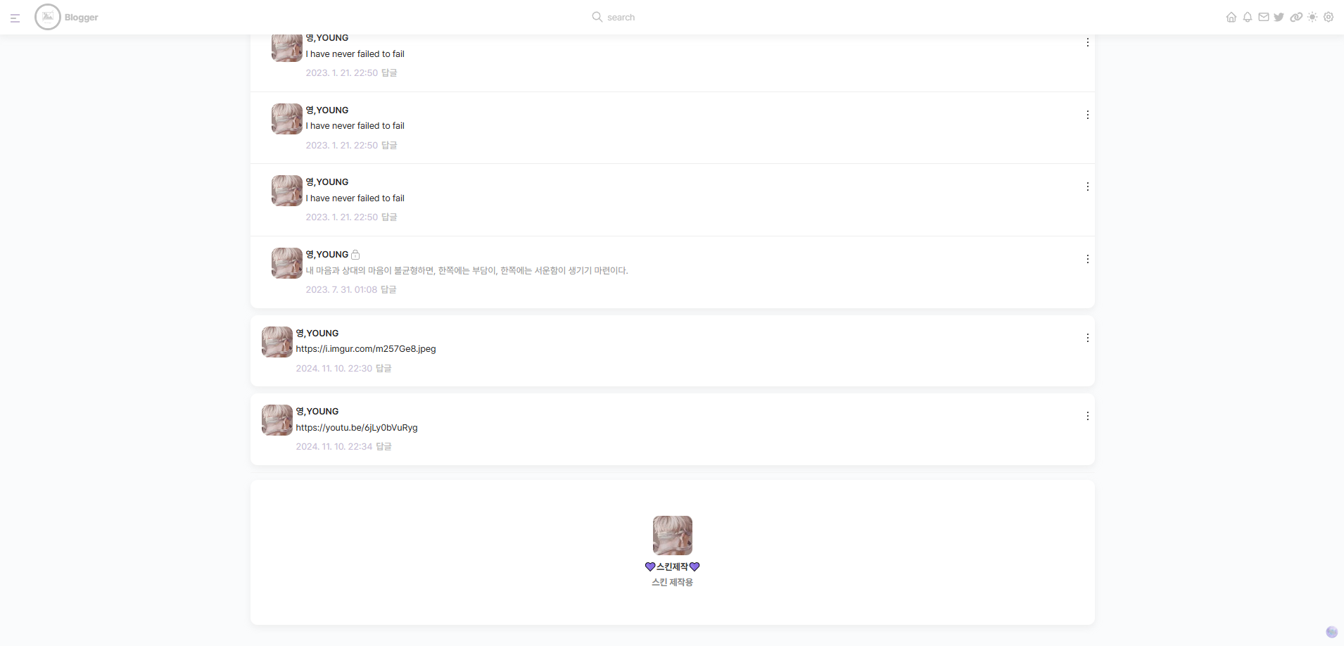 스킨 오류 및 수정문의는 사용중인 스킨 본문 댓글, 방명록,