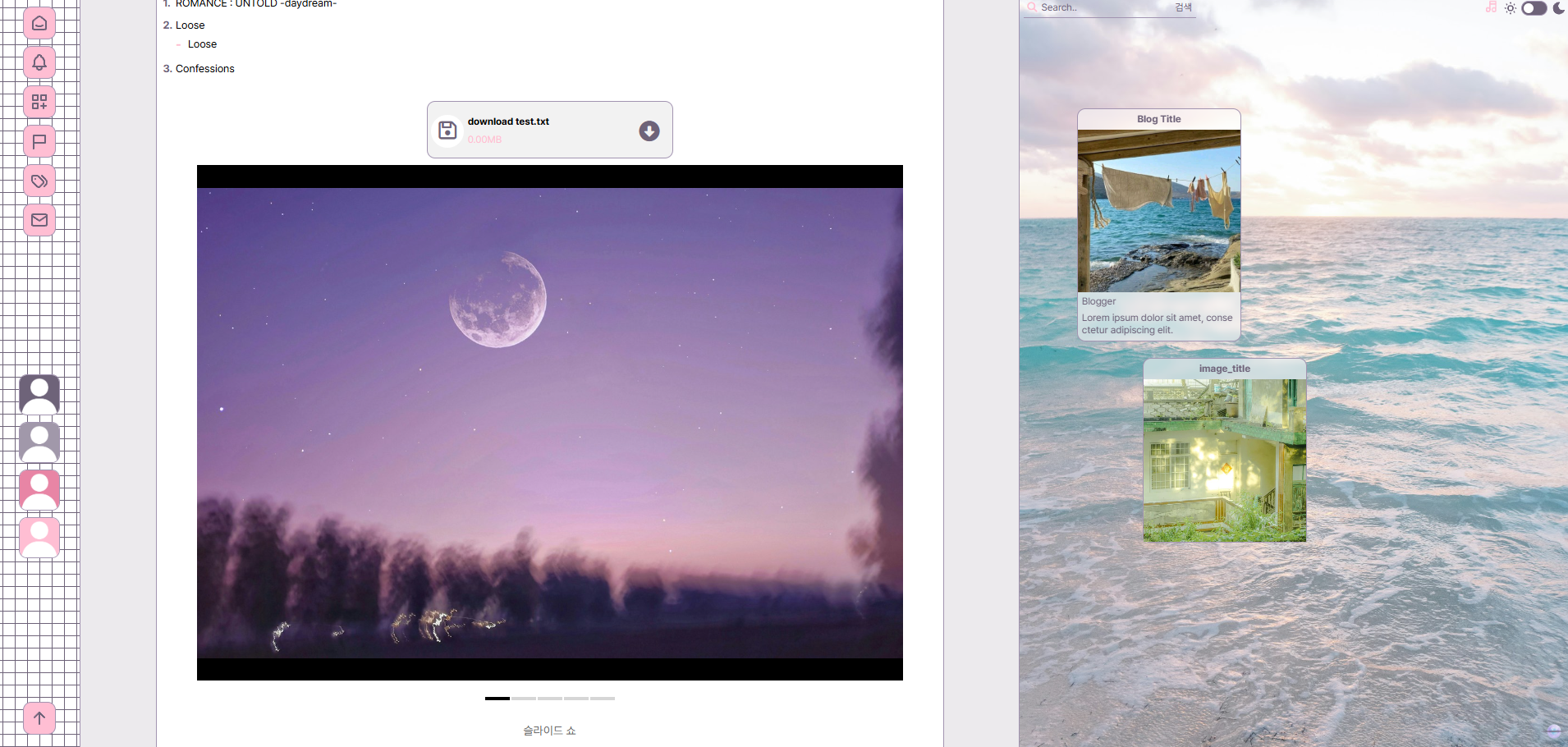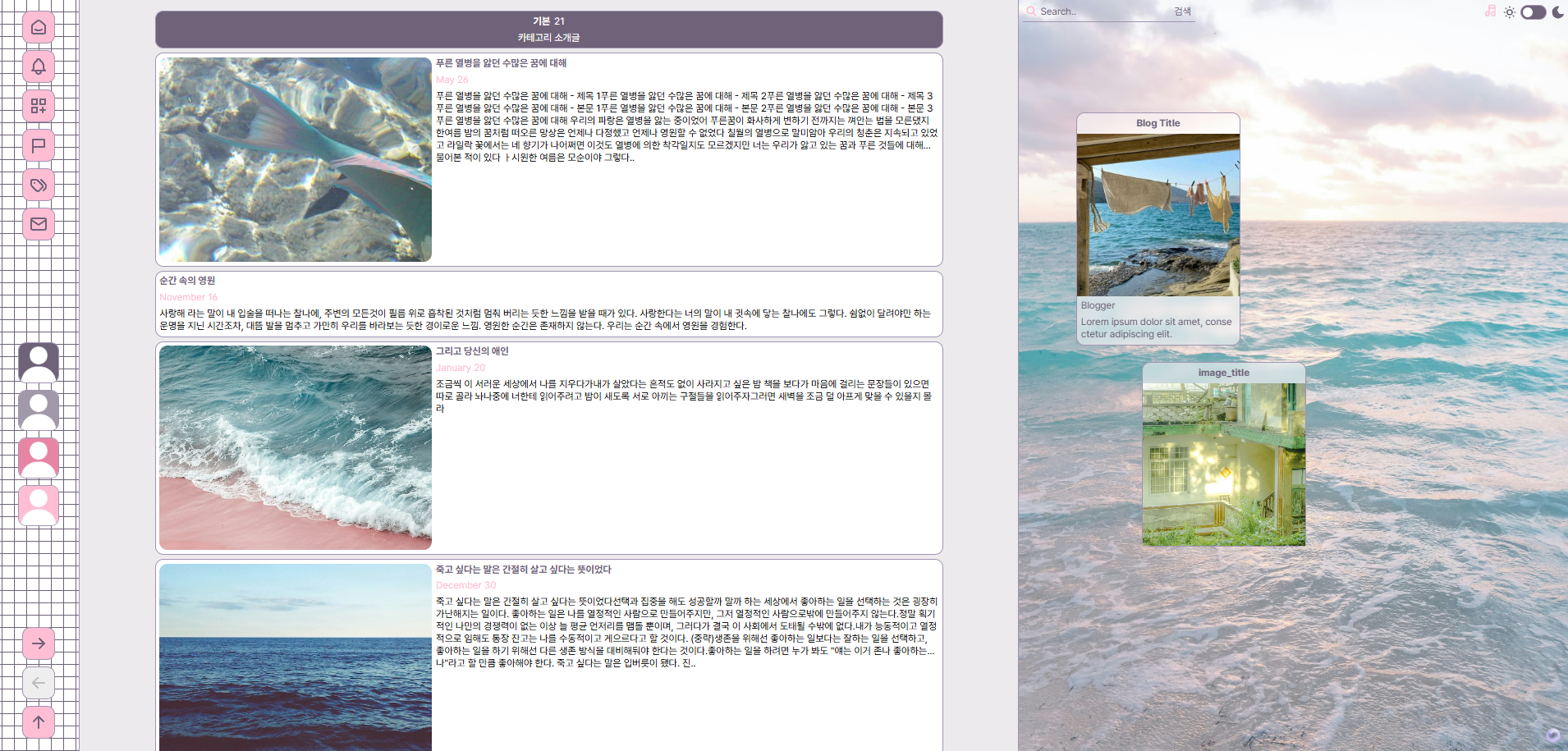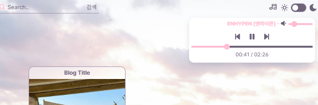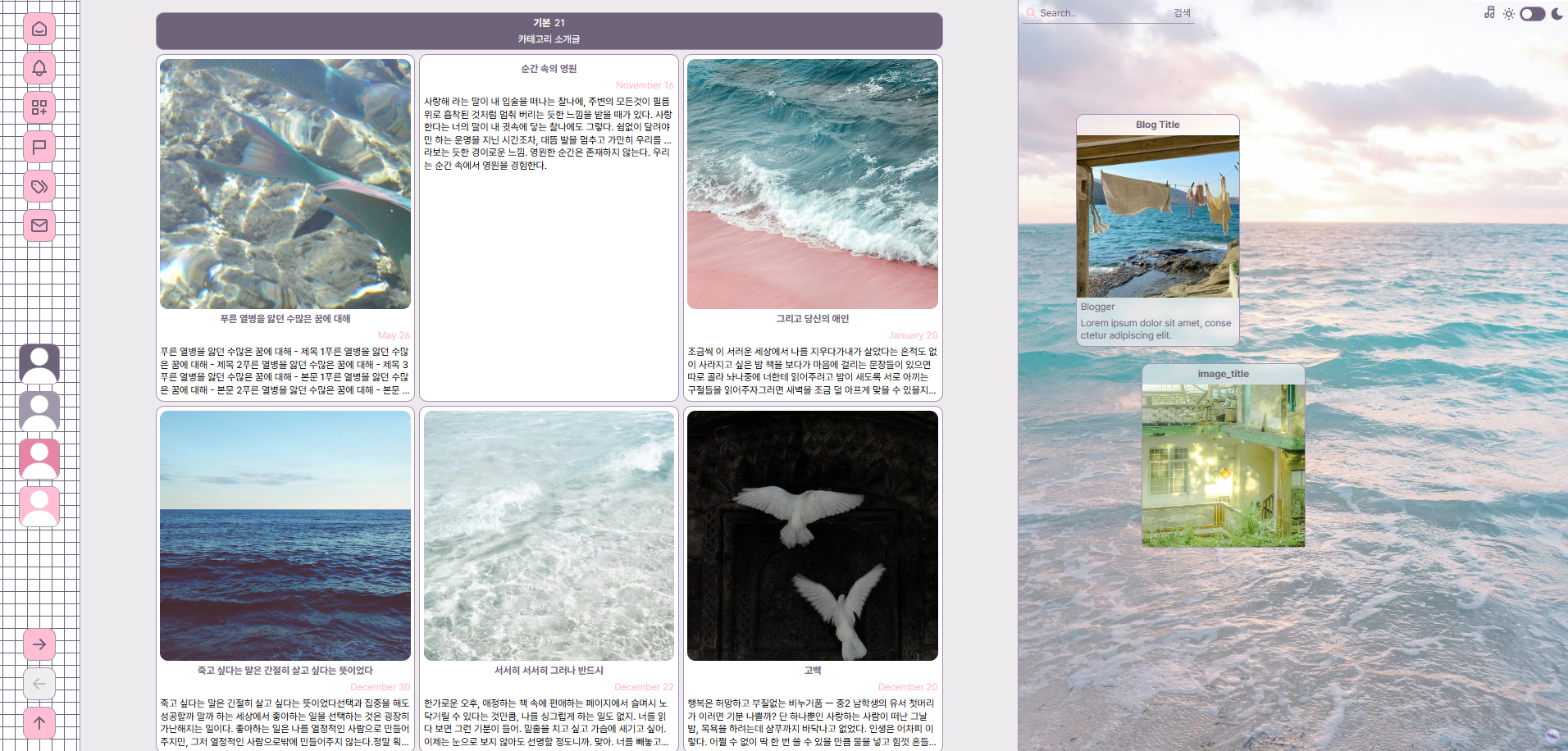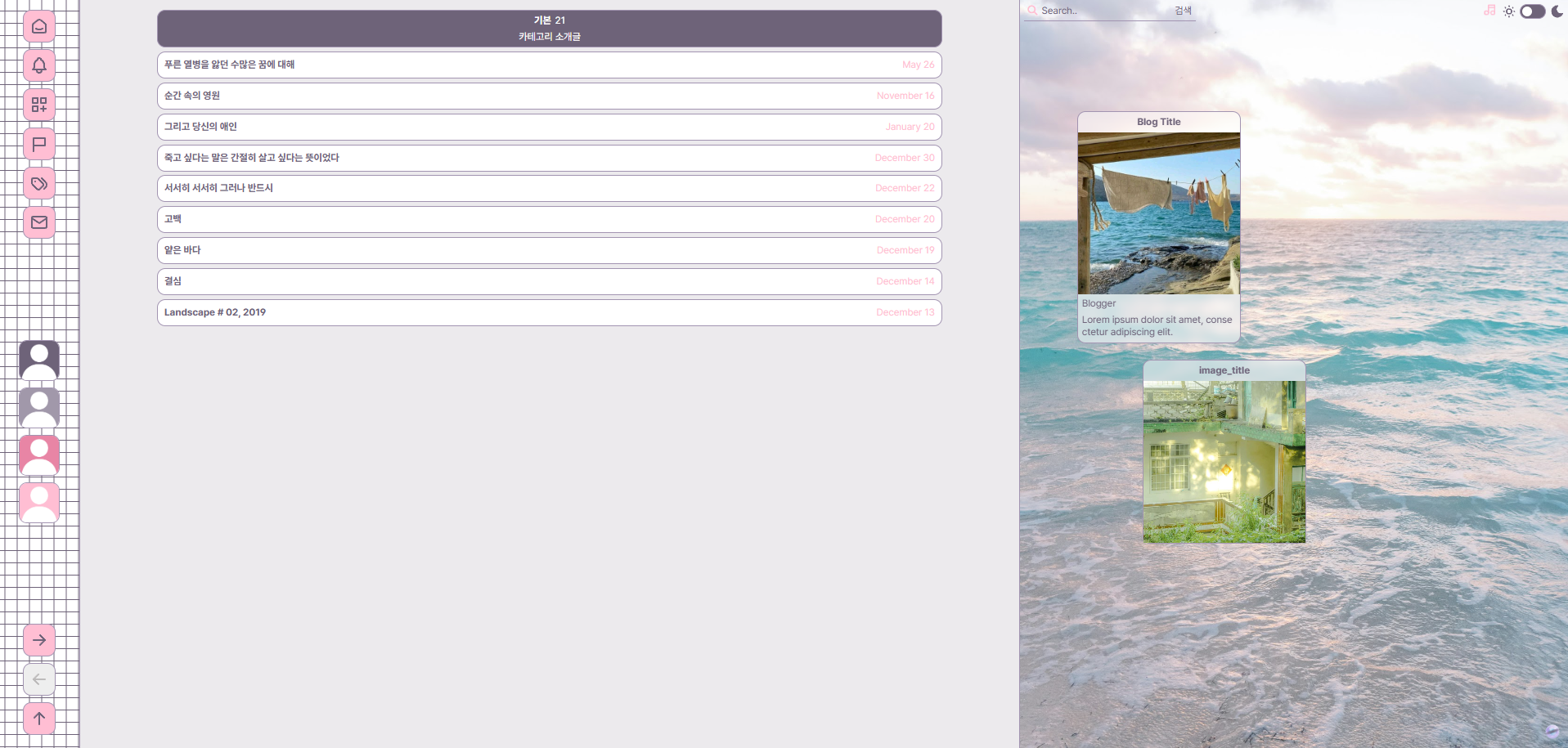 개인적으로 좋아하는 취향을 담아 티스토리 스킨을 제작합니다 ꒰՞⸝⸝•̀𖥦•́꒱و ̖́-♡