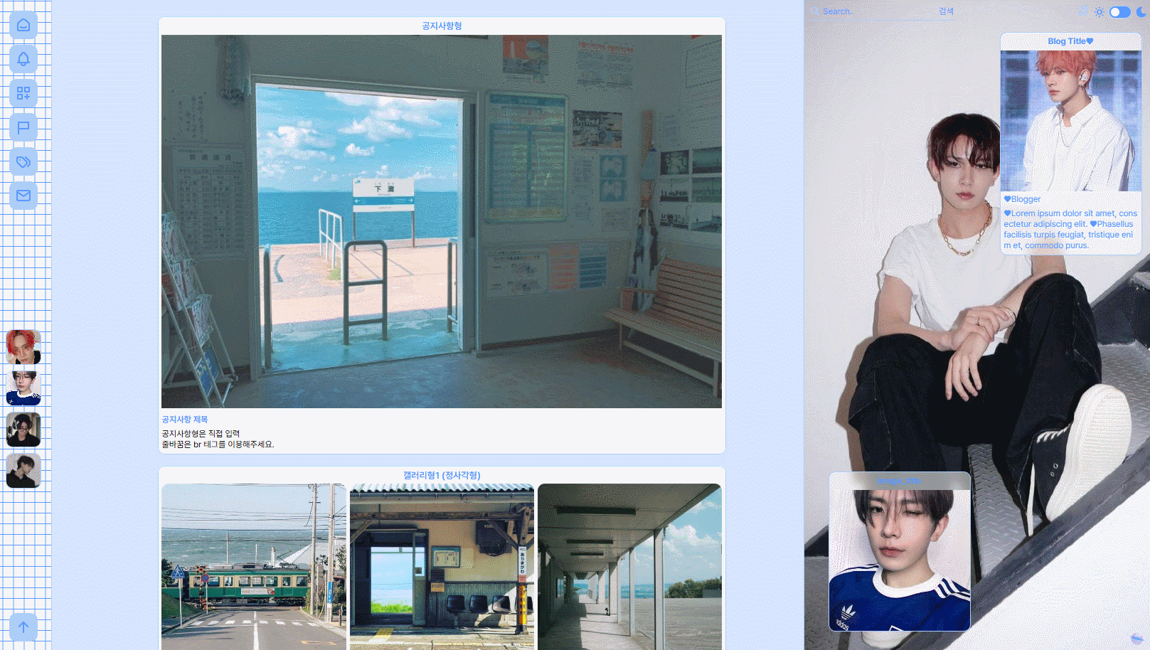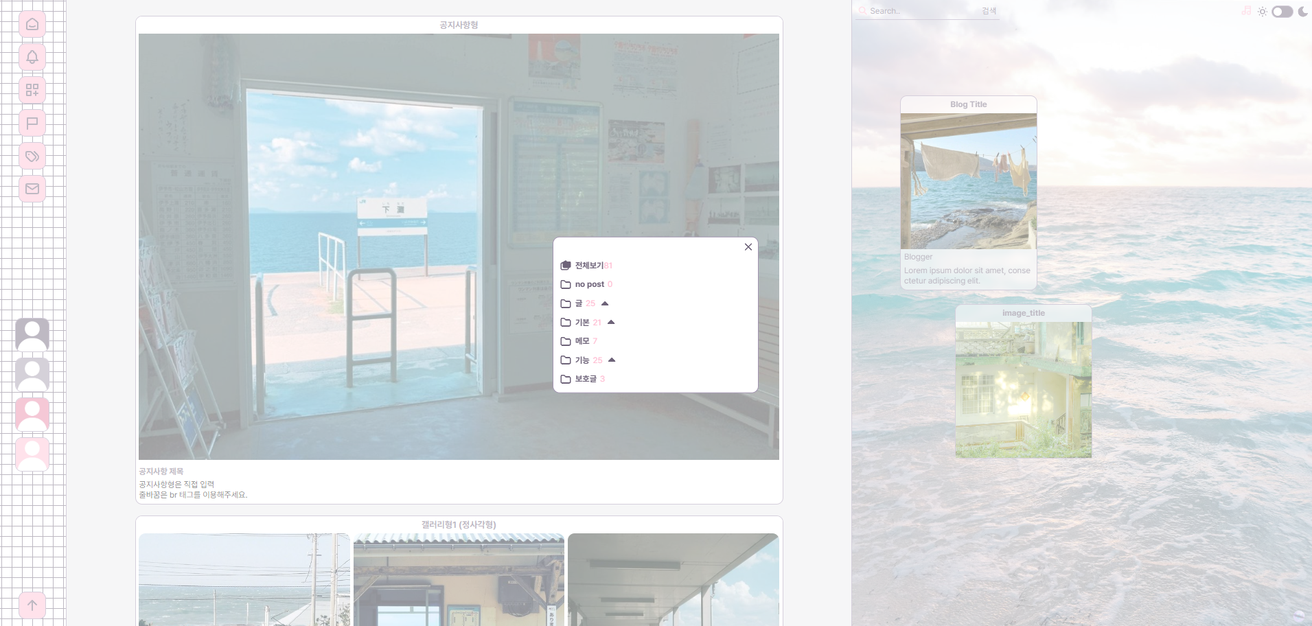 공지사항태그갤러리형1갤러리형2갤러리형3목록형메모형요약형디데이형리뷰형타임라인형투두형플레이리스트형 1플레이리스트형2플레이리스트형 2방명록 및 댓글본문