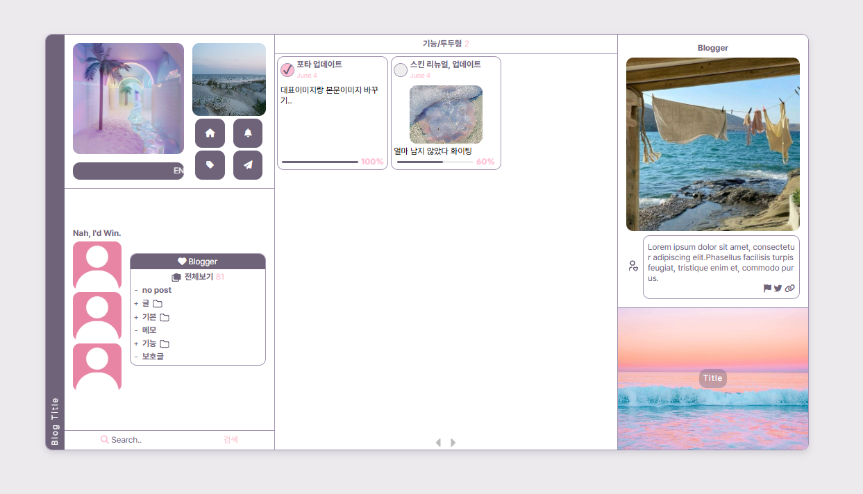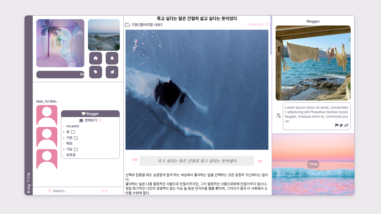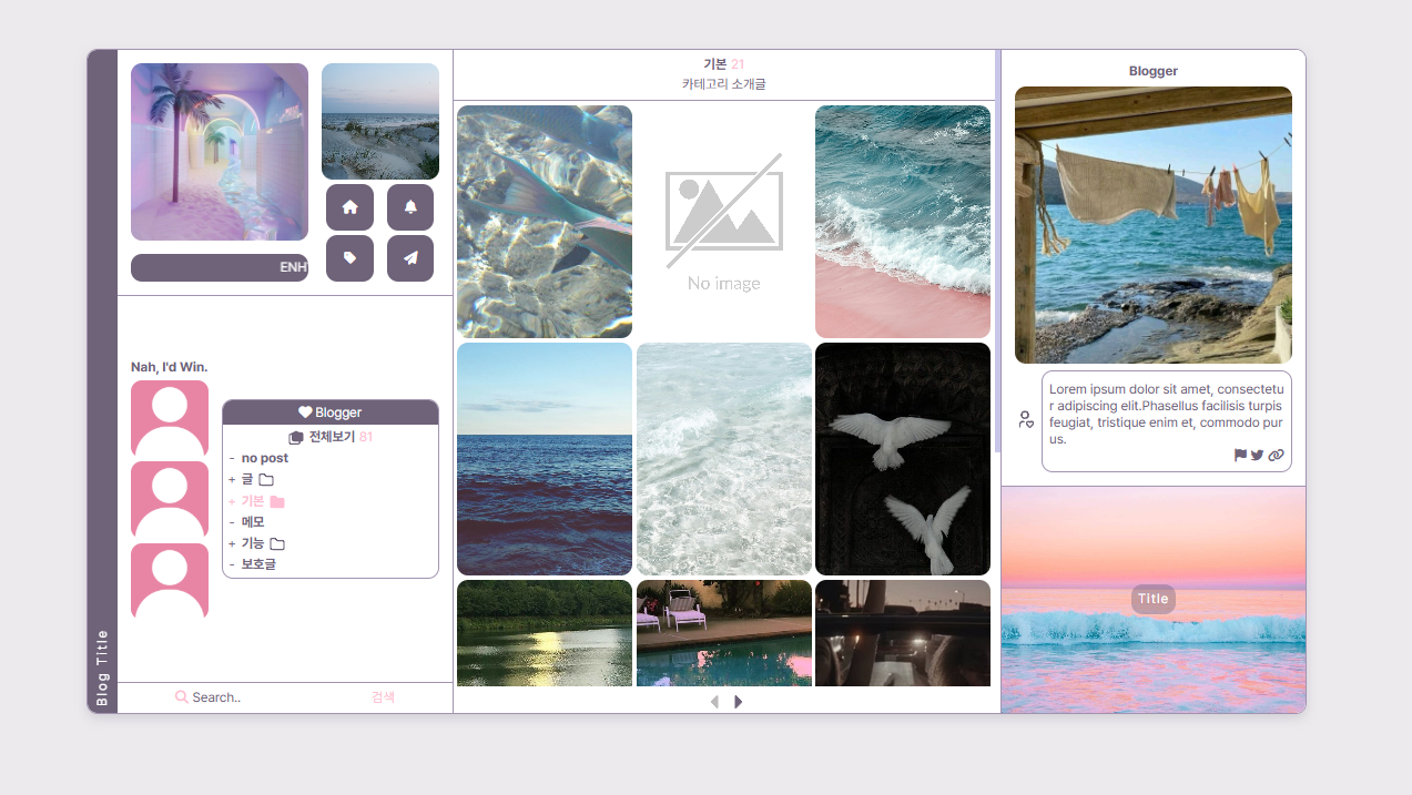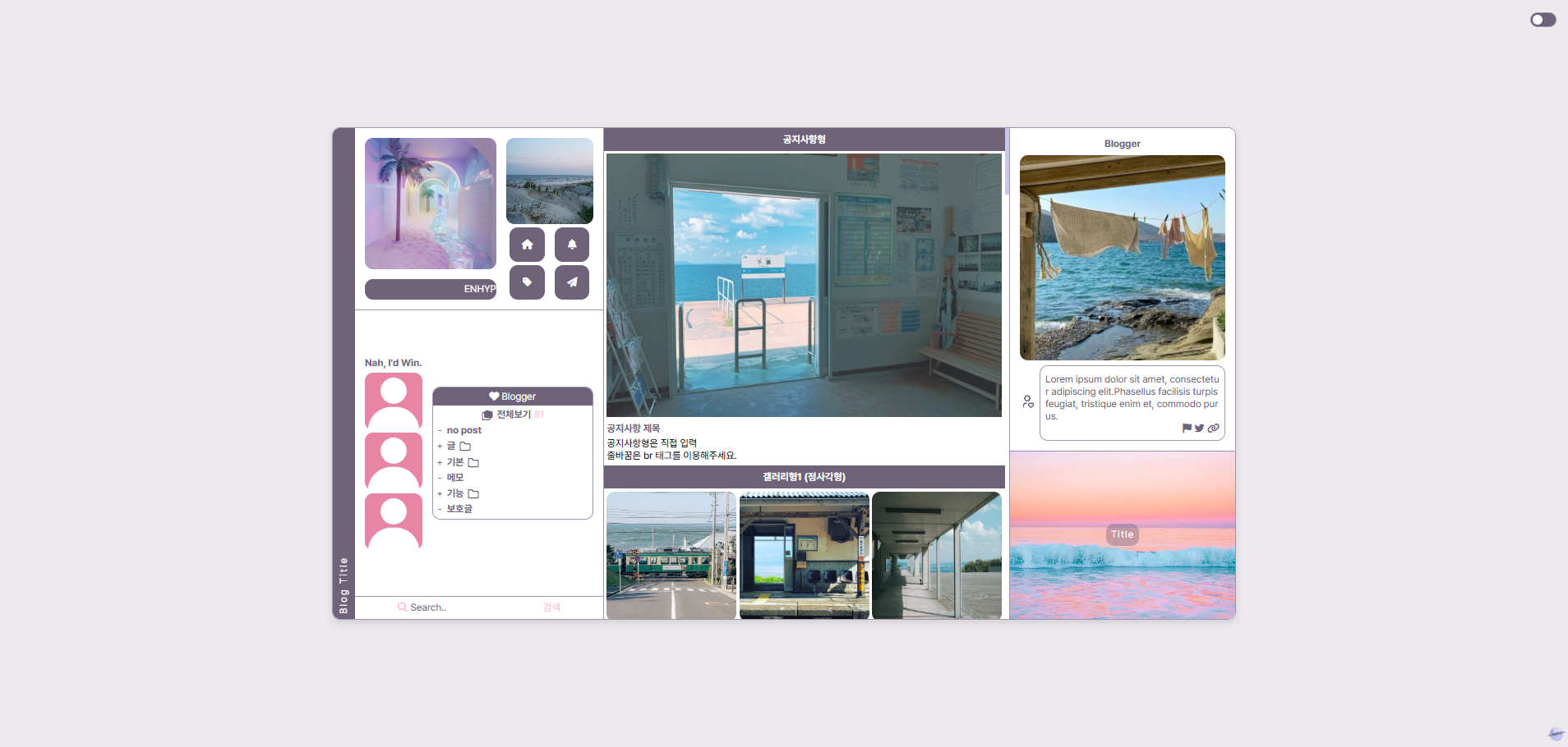 개인적으로 좋아하는 취향을 담아 티스토리 스킨을 제작합니다 ꒰՞⸝⸝•̀𖥦•́꒱و ̖́-♡