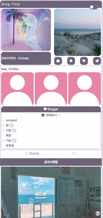 - 기본 홈커버 (공지사항, 갤러리, 목록, 메모, 요약, 디데이, 리뷰, 타임라인, 투두)