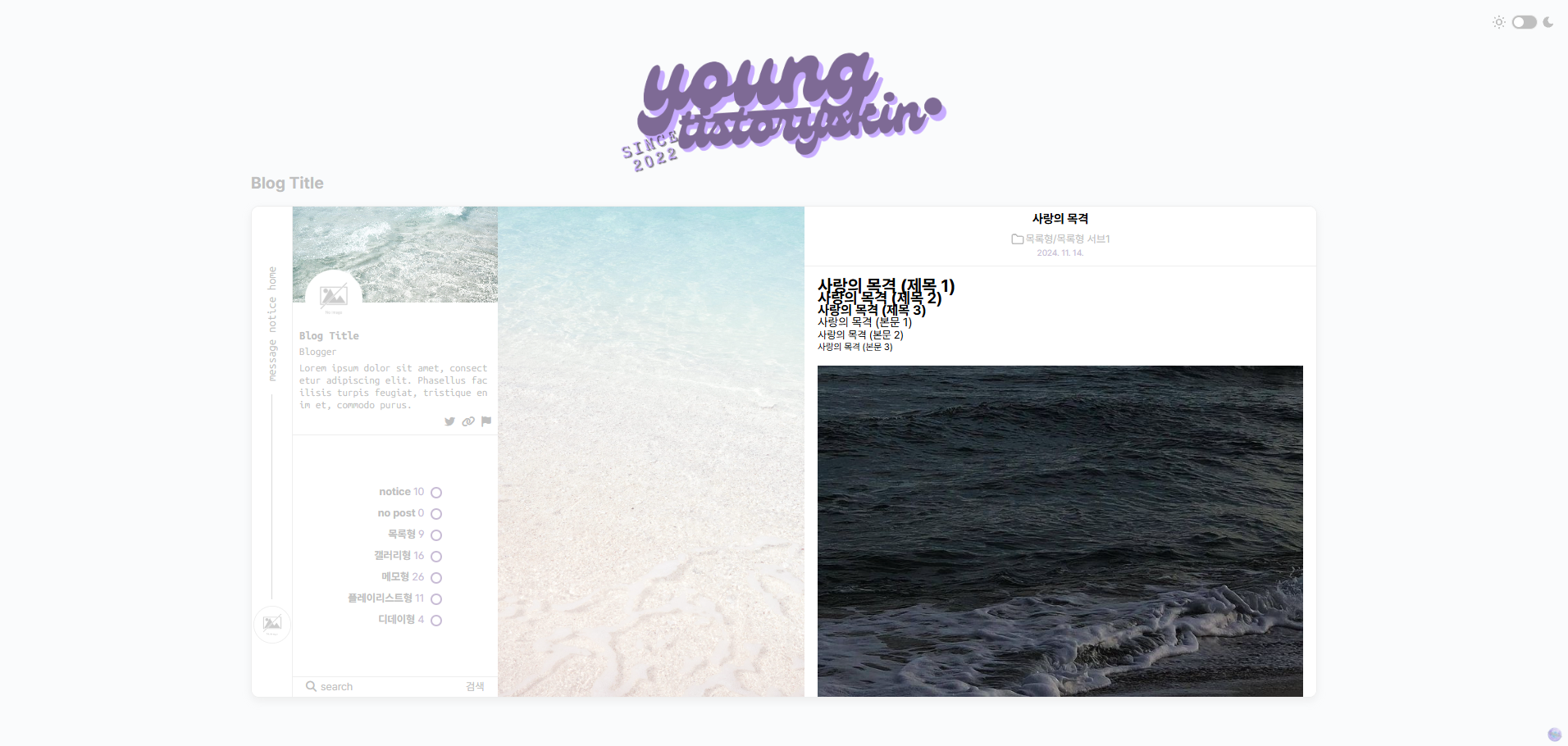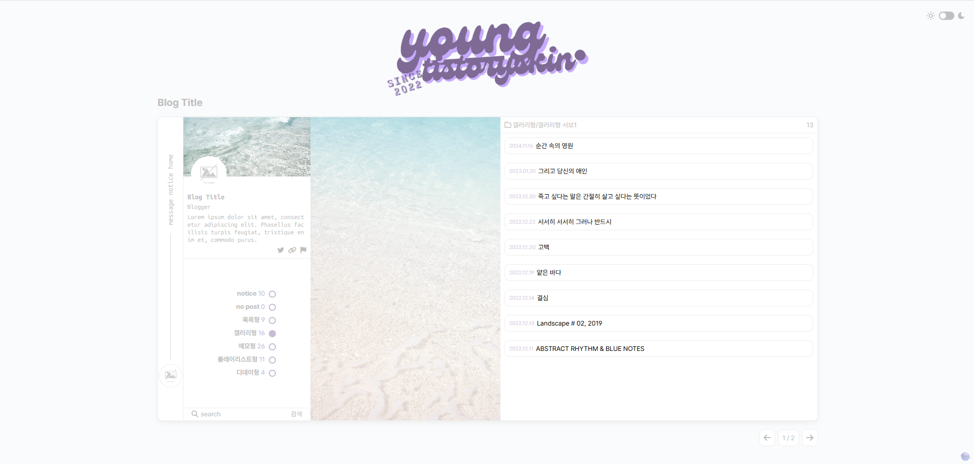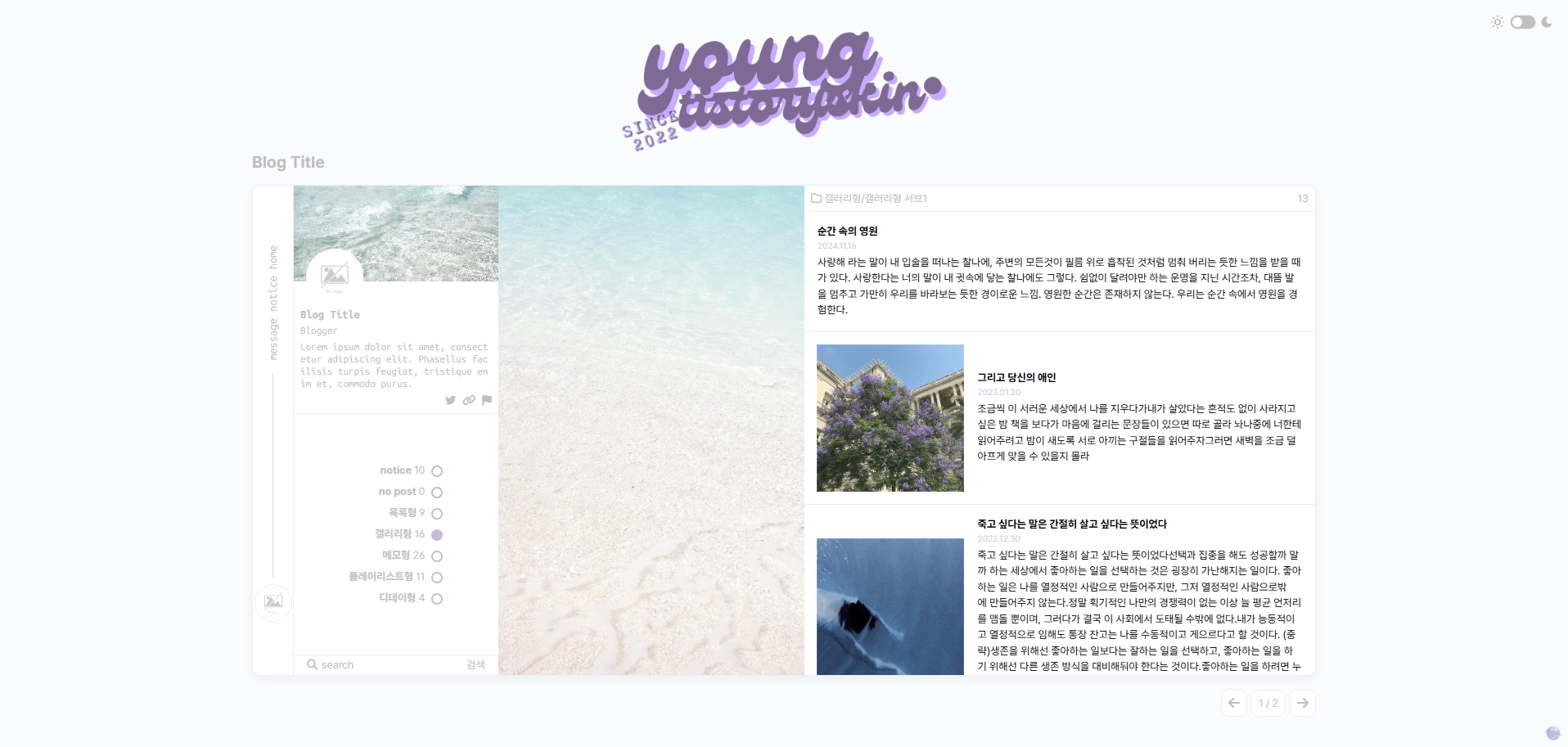 개인적으로 좋아하는 취향을 담아 티스토리 스킨을 만들고 있습니다.