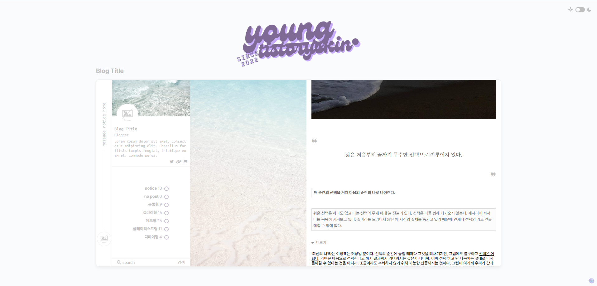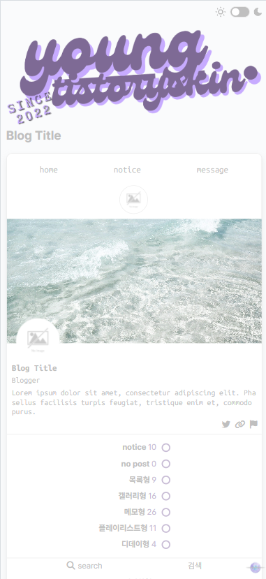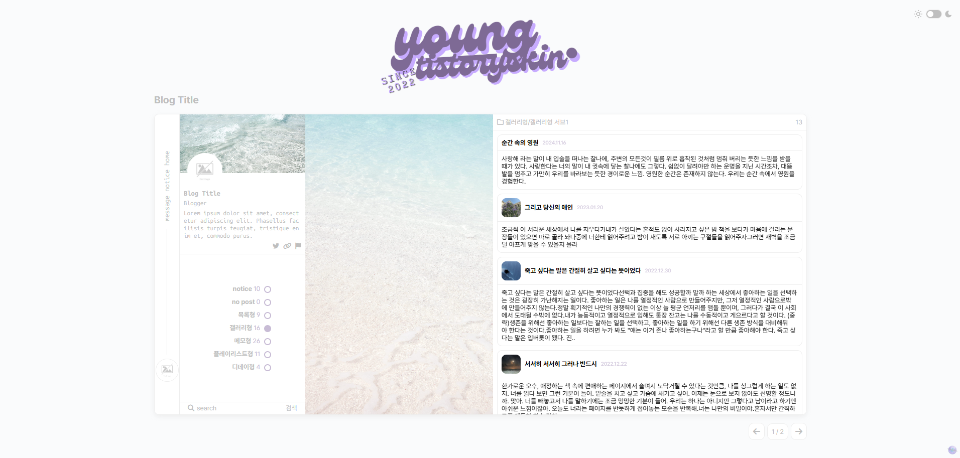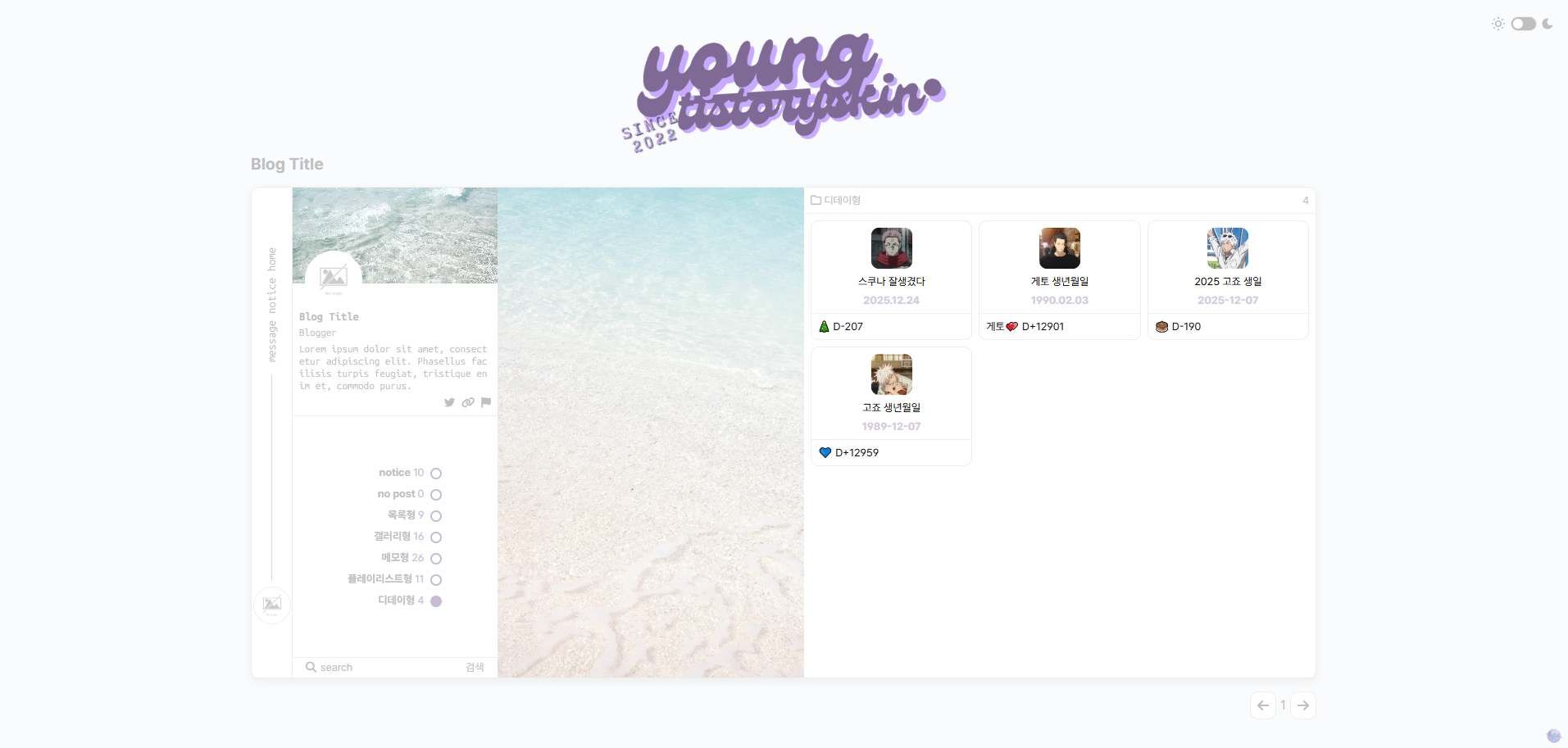 개인적으로 좋아하는 취향을 담아 티스토리 스킨을 만들고 있습니다.