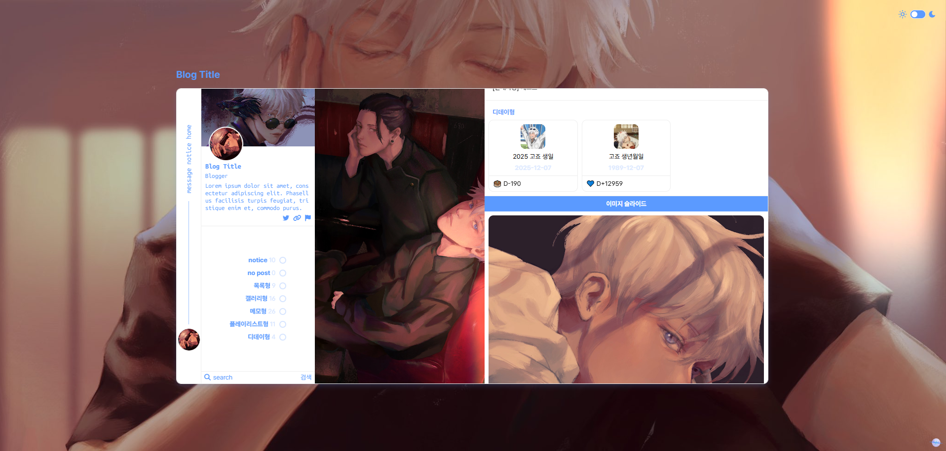 - 프로필 및 배경 그 외 사용되는 이미지는 고죠 관련 이미지를 사용합니다