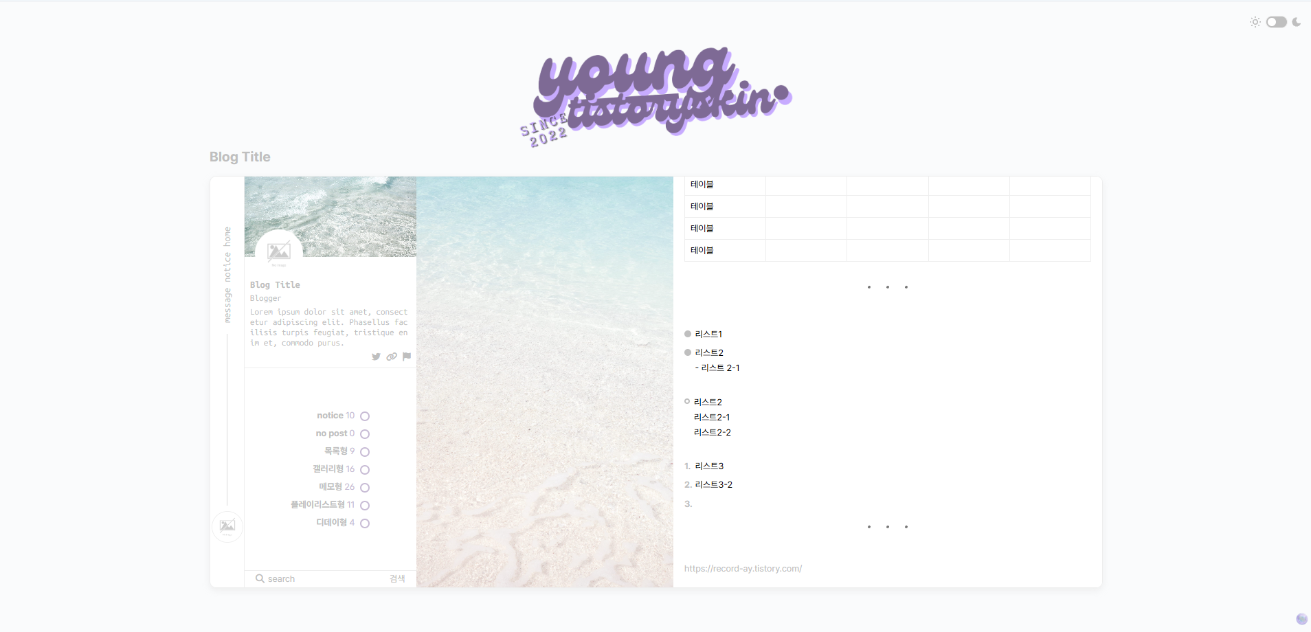 * 스킨편집하기창에서 목록 구성 요소를 모두 목록만으로 설정해주세요.