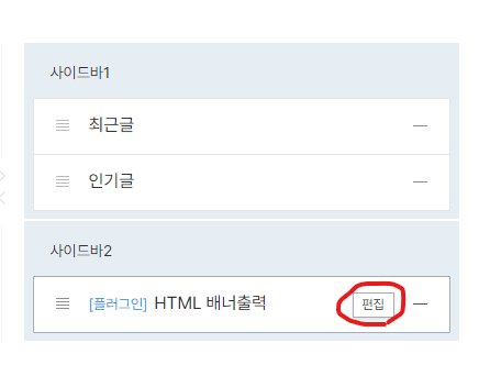 4. HTML 배너 출력 > + 클릭 > 사이드바 2(넣고싶은곳에) 추가