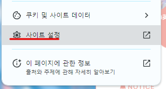 사이트 설정 클릭