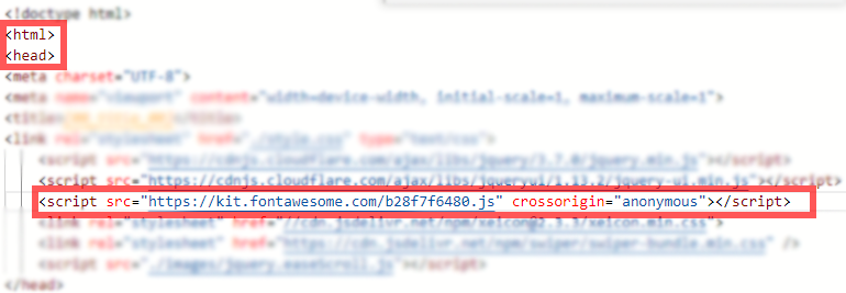 상단 <head> 아래 코드 주소 중 fontawesome이 들어간 코드를