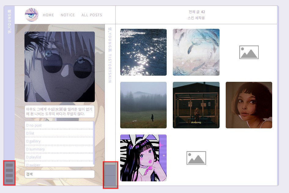 * 스킨편집하기창에서 목록 구성 요소를 모두