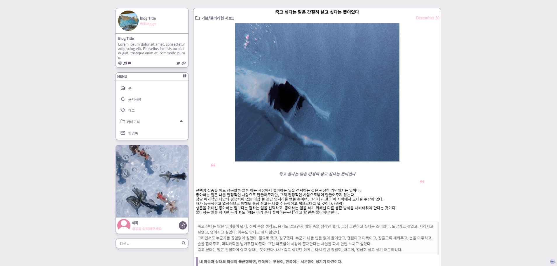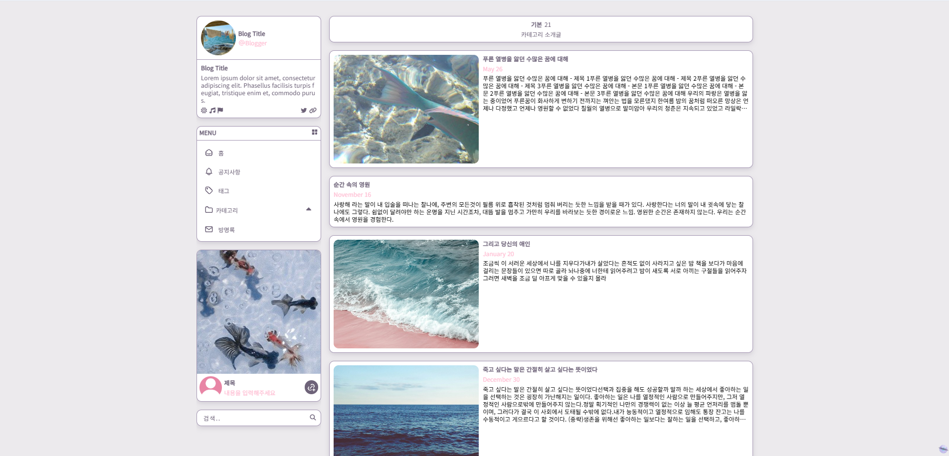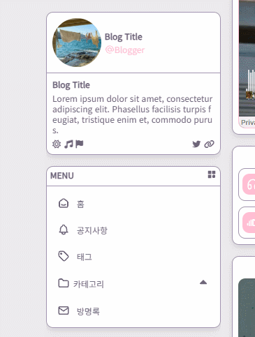 개인적으로 좋아하는 취향을 담아 티스토리 스킨을 제작합니다 ꒰՞⸝⸝•̀𖥦•́꒱و ̖́-♡