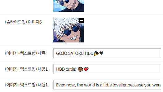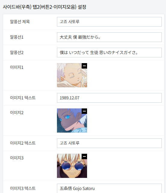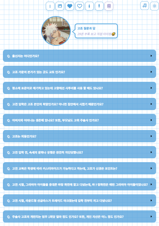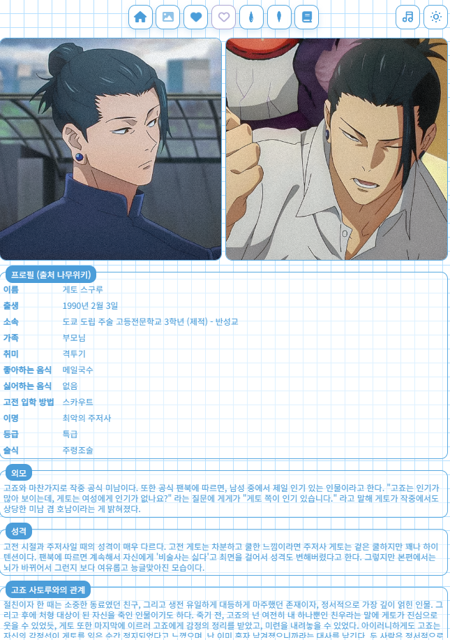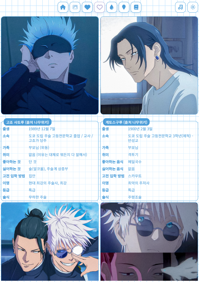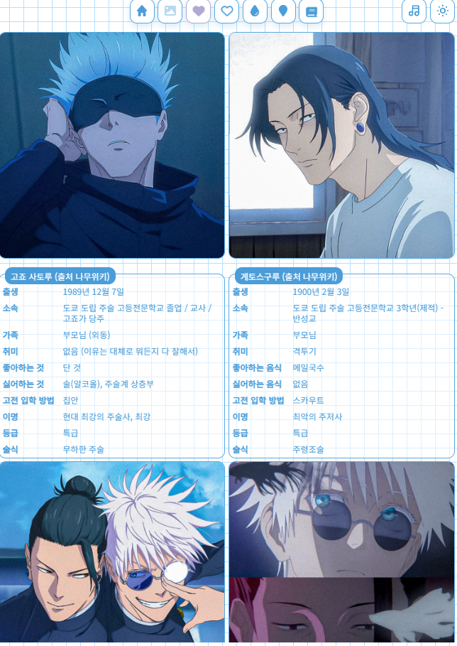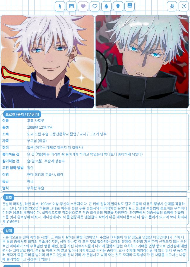 - 프로필 및 배경 그 외 사용되는 이미지는 고죠 관련 이미지를 사용합니다
