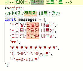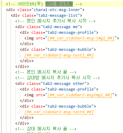 * 마찬가지로 타입선택 후 스킨 편집창에서 수정 * 메시지 추가 방법 - 스킨편집하기 - html - ctrl+f(찾기) - 하단 메시지형 검색