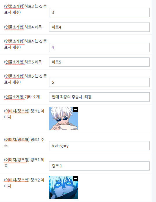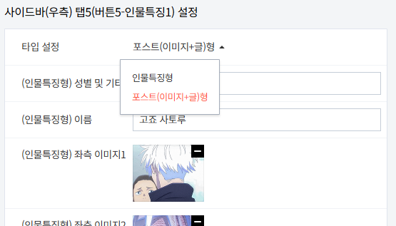 * 위 이미지 순서대로 인물소개형 - 이미지/링크형 - 도넛그래프형 * 수정은 스킨편집창에서 타입 선택 1
