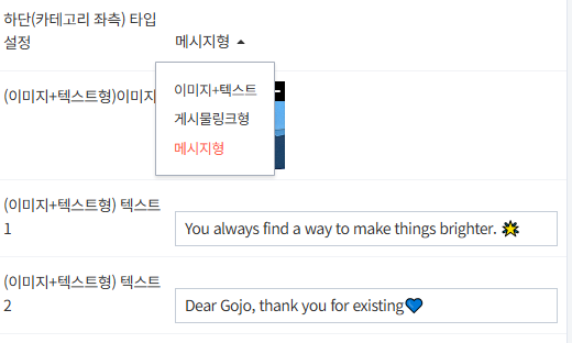 * 위 이미지 순서대로 이미지+텍스트 / 게시물링크형 / 메시지형